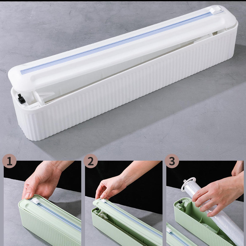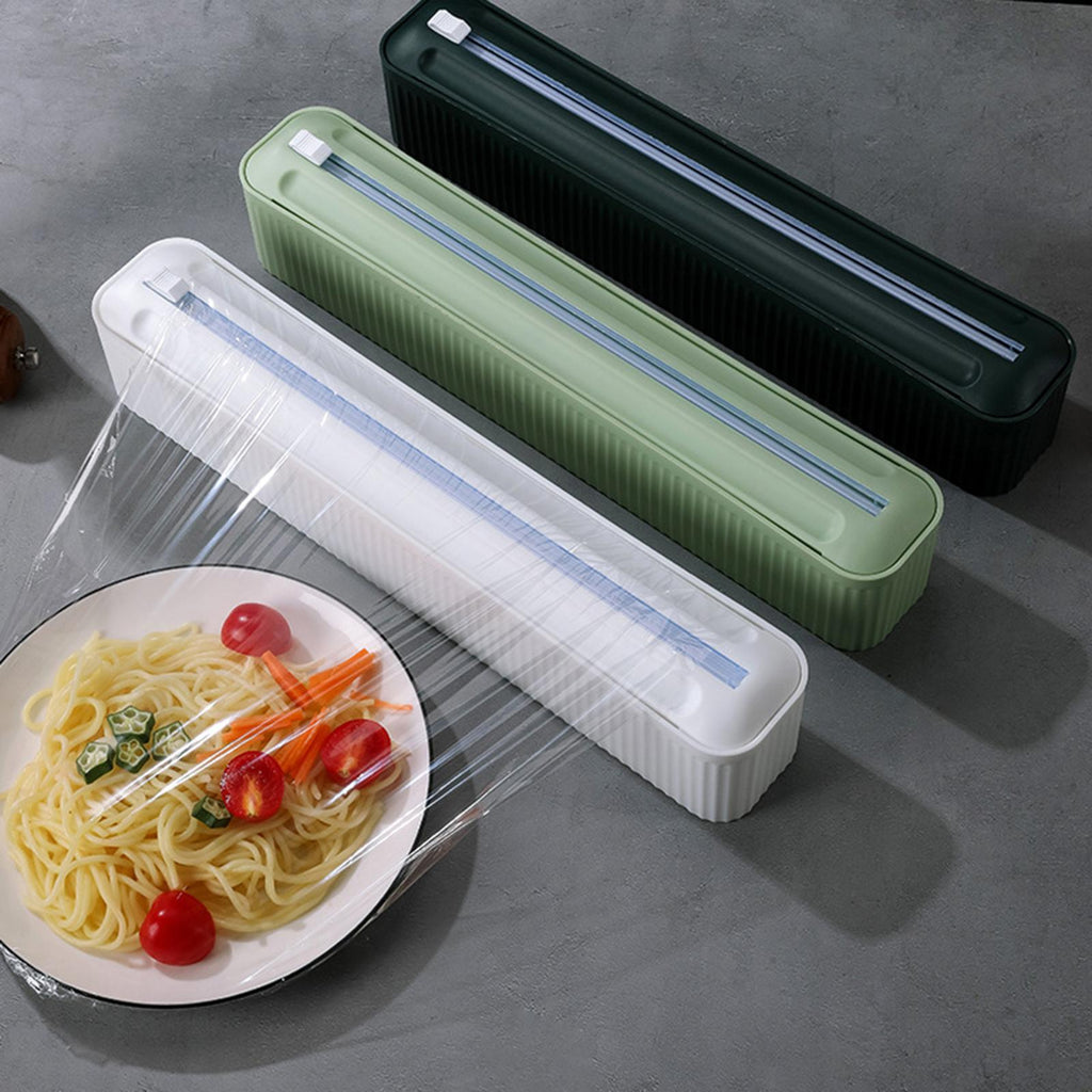 EASILY CUTTING: Slide cutter provides effortless, precision cutting using one finger; edge of cling film stays in a ready position for the next use eliminating waste and stuck edges.