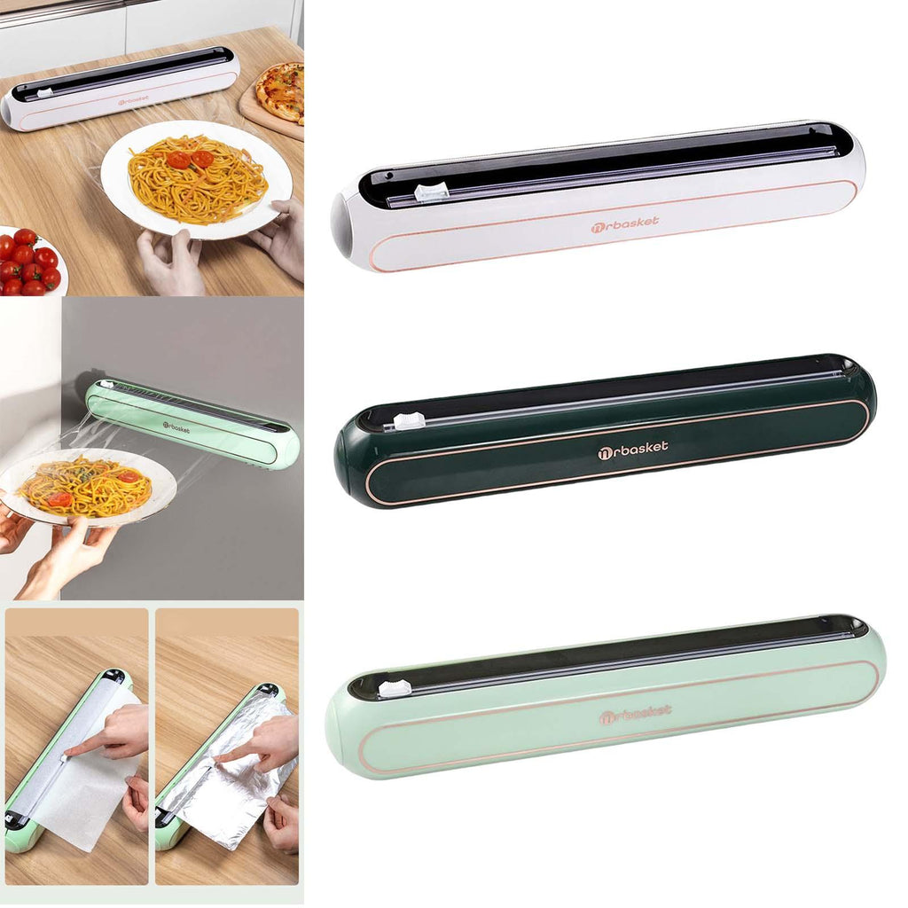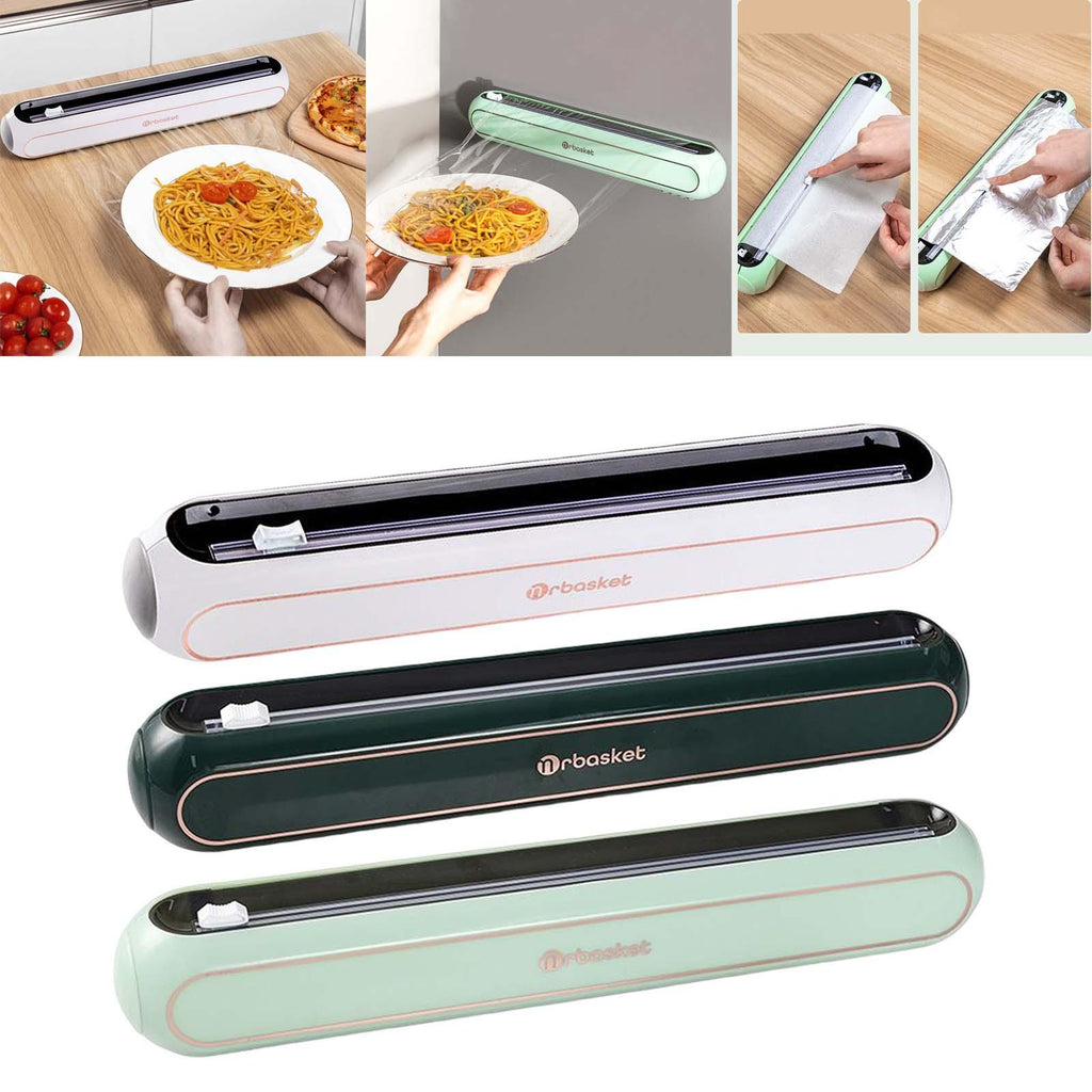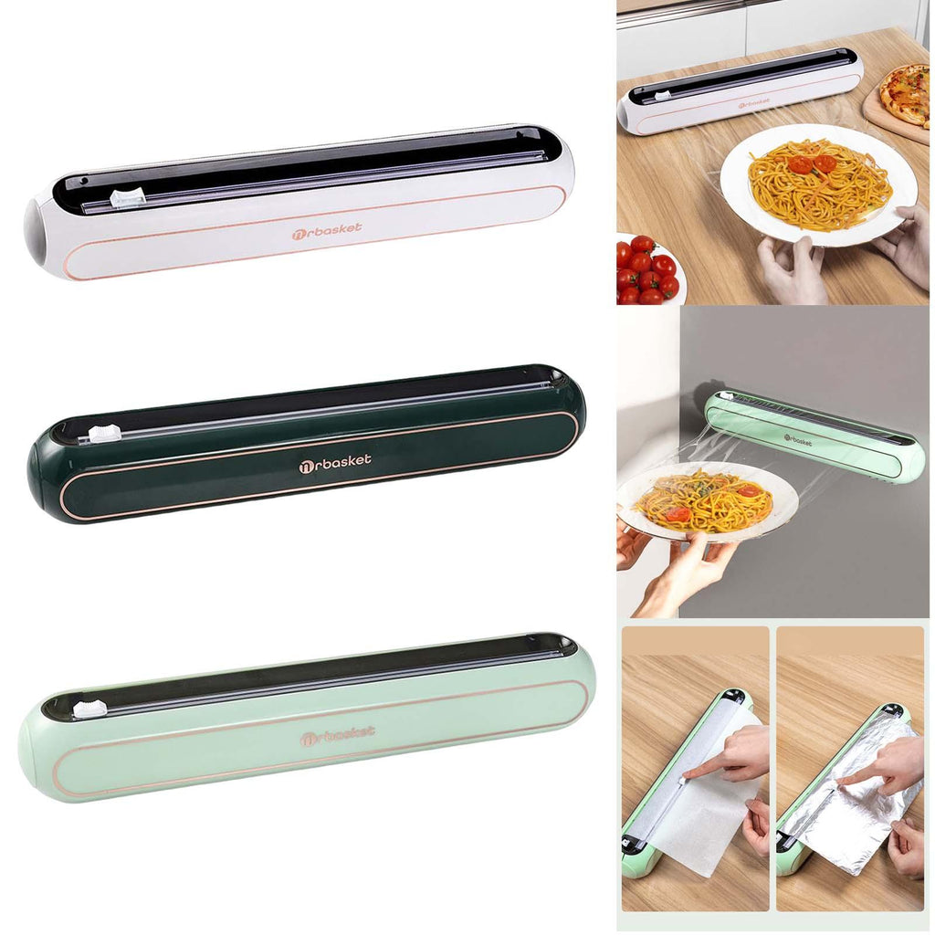 Maxbell Cling Film Wrap Dispenser Multi Functional Refillable Kitchen Storage Tool White