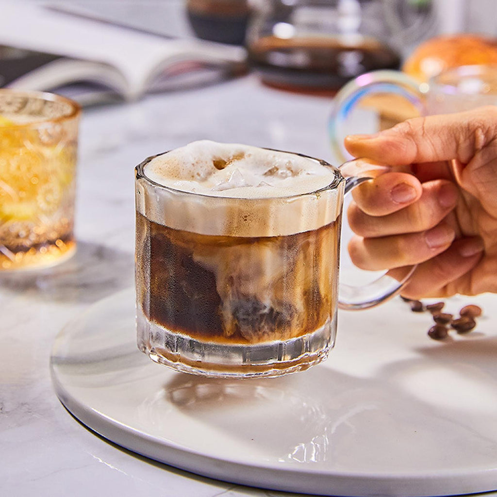 Durable: glass coffee mug, heat resistant, clear, both for/hot.