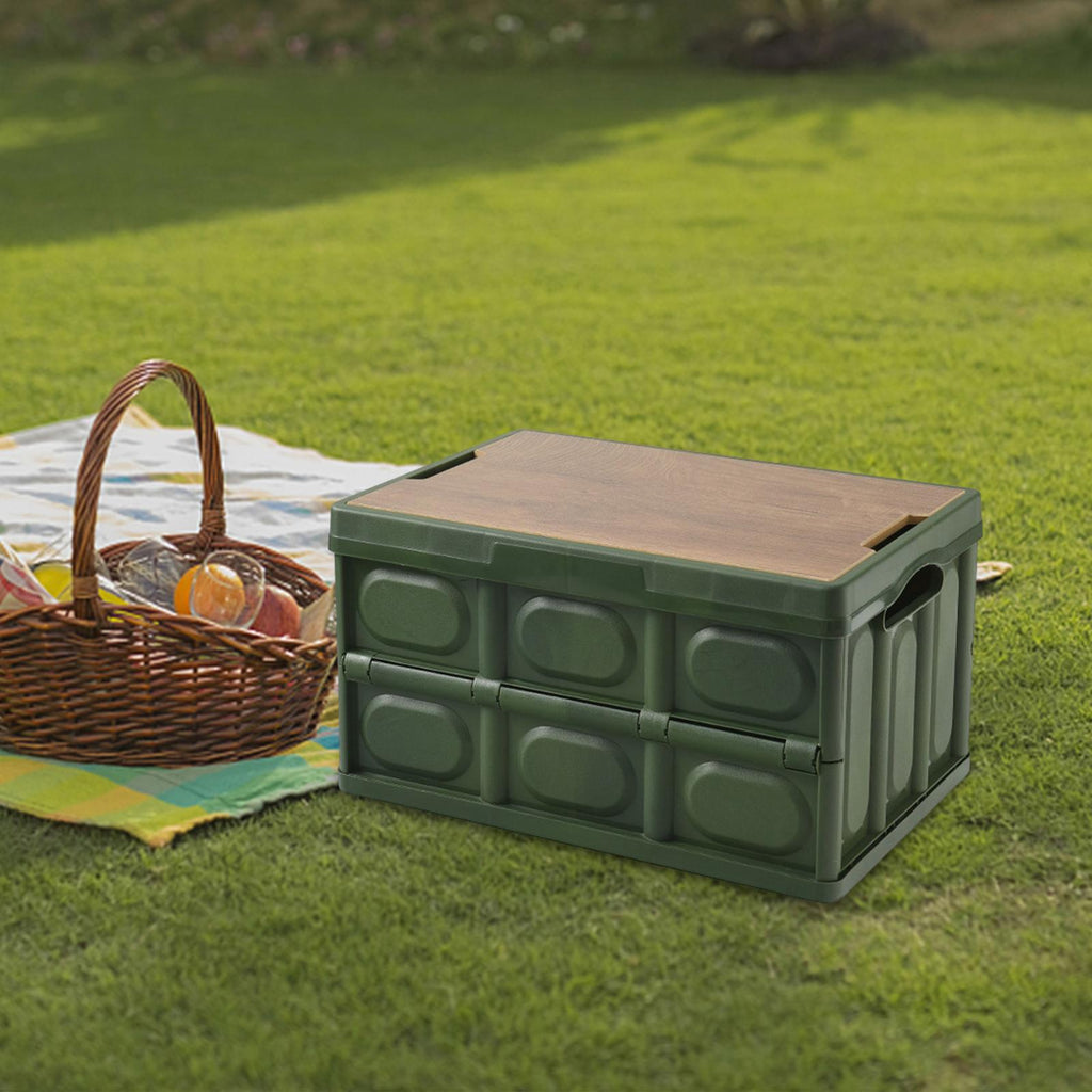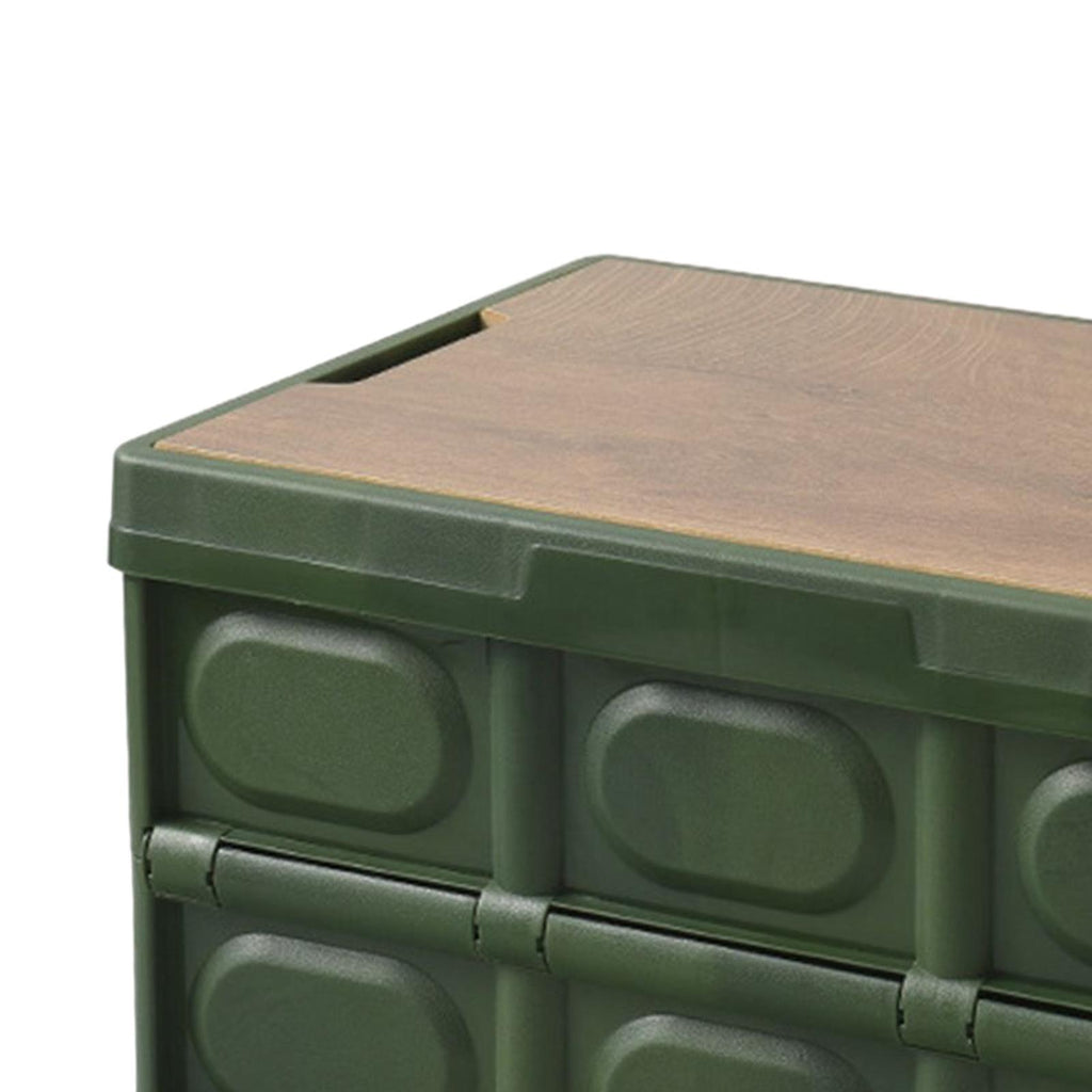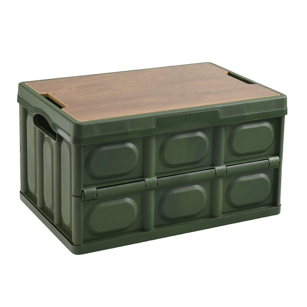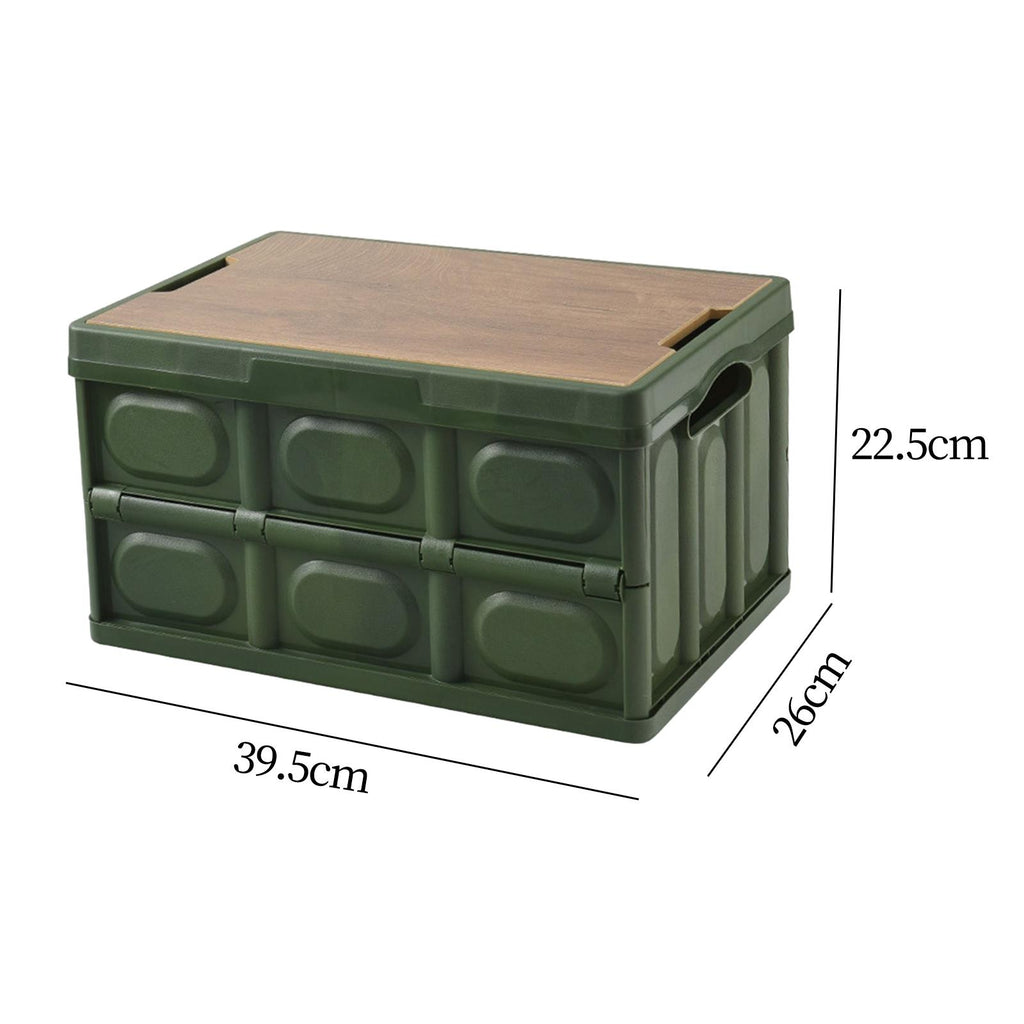 Maxbell Collapsible Storage Bin Container with Wooden Lid for Indoor Fishing Outdoor Dark Green 30L
