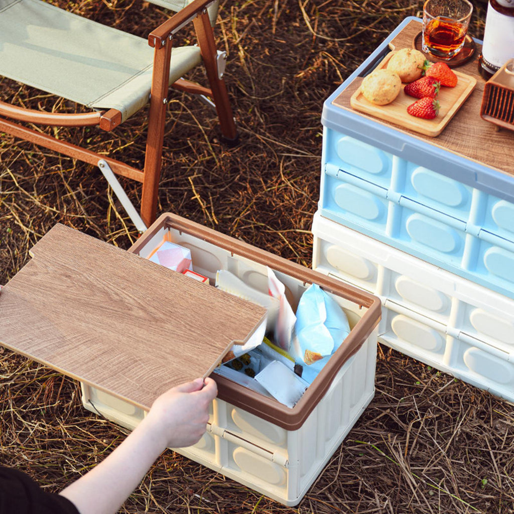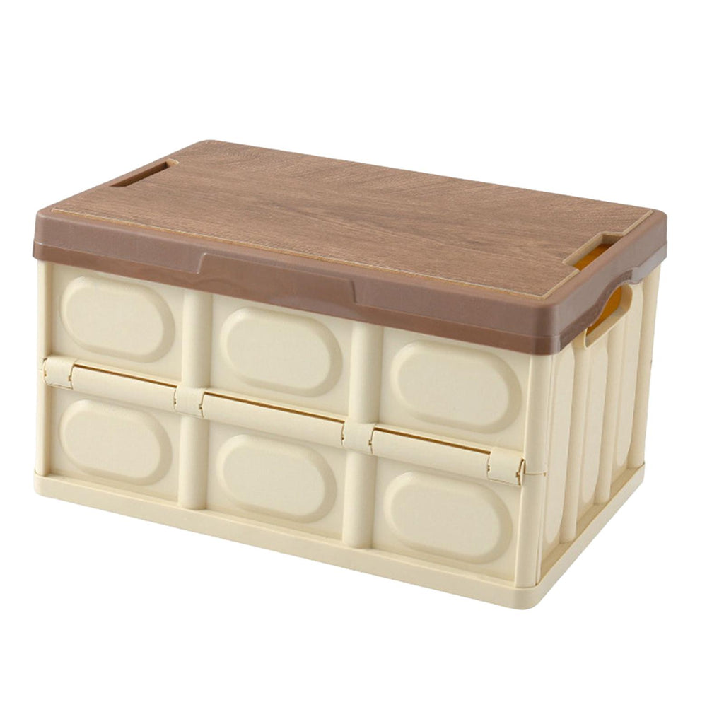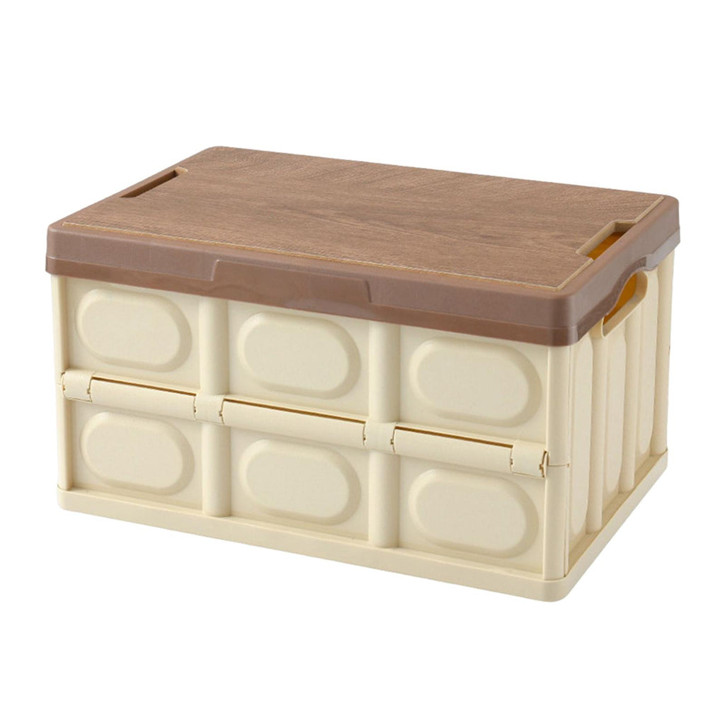 Maxbell Collapsible Storage Bin Container with Wooden Lid for Indoor Fishing Outdoor Light Coffee 55L