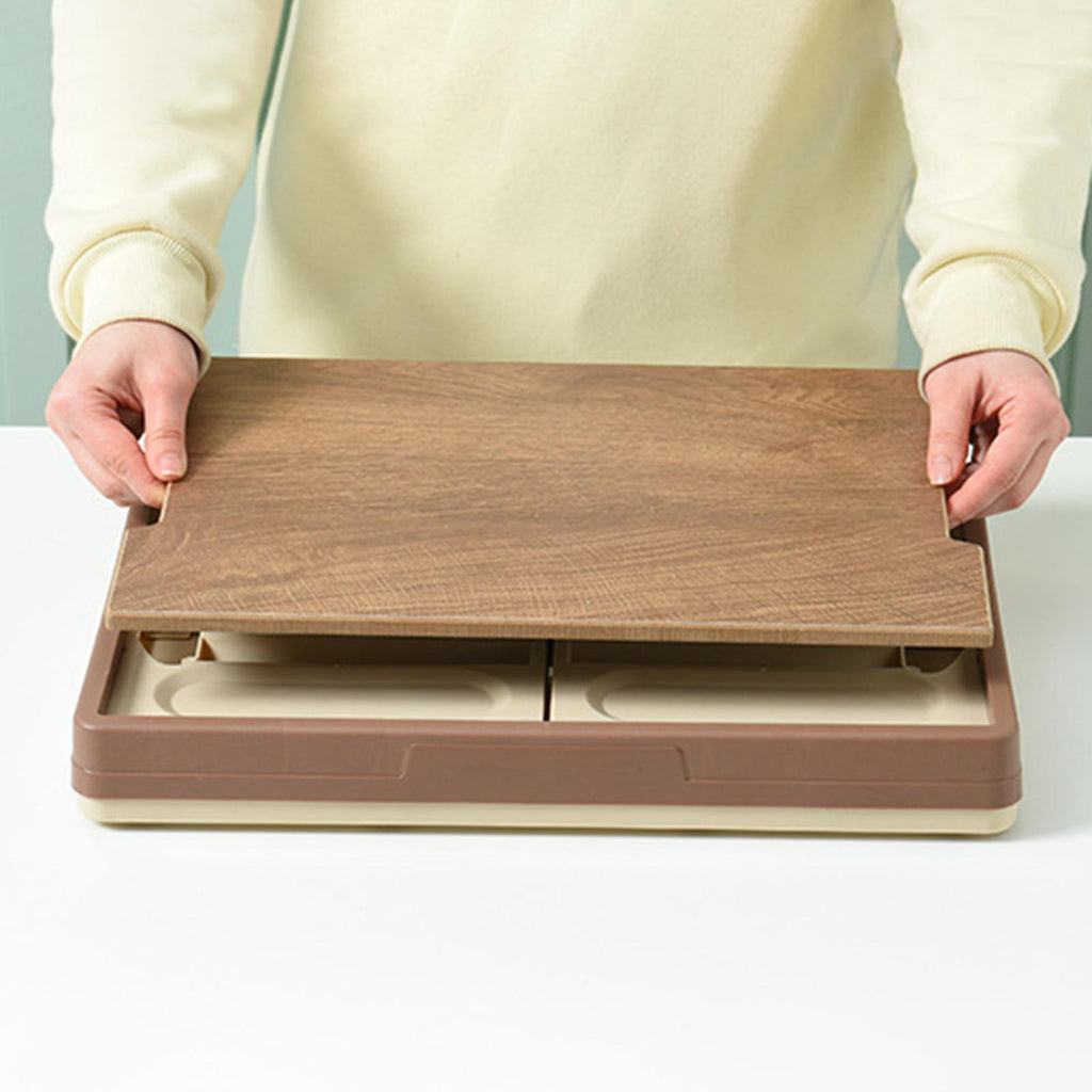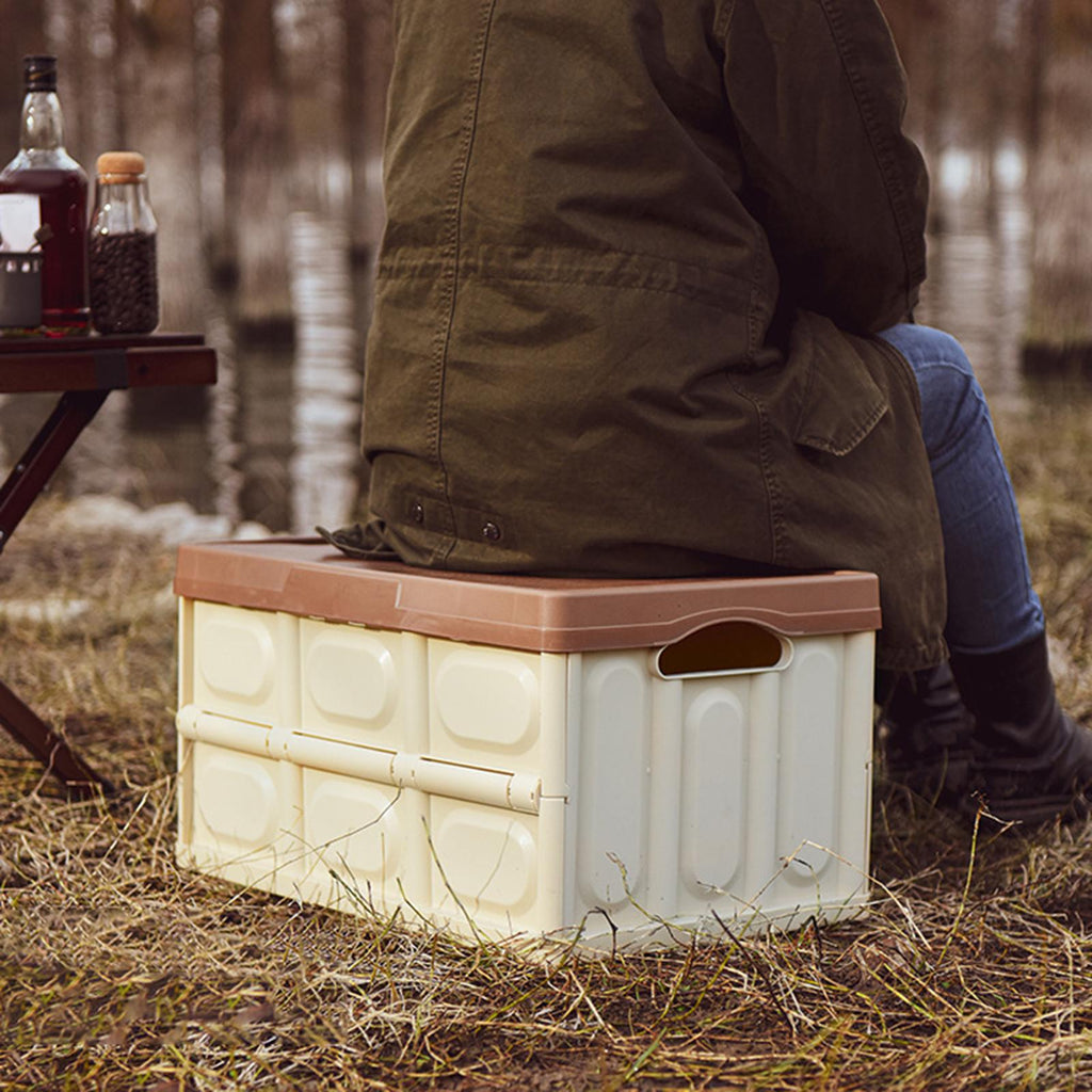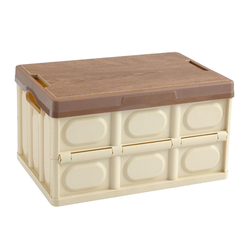 Maxbell Collapsible Storage Bin Container with Wooden Lid for Indoor Fishing Outdoor Light Coffee 55L