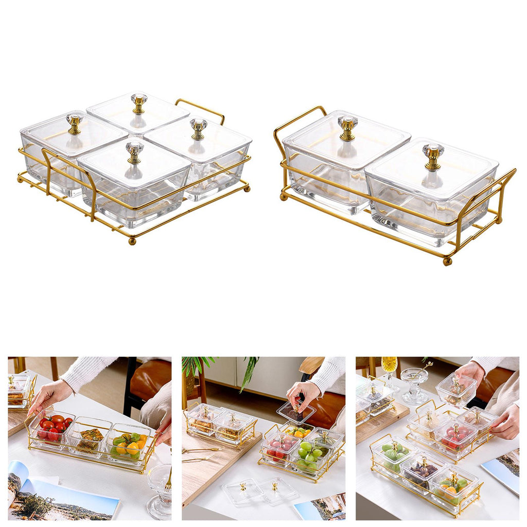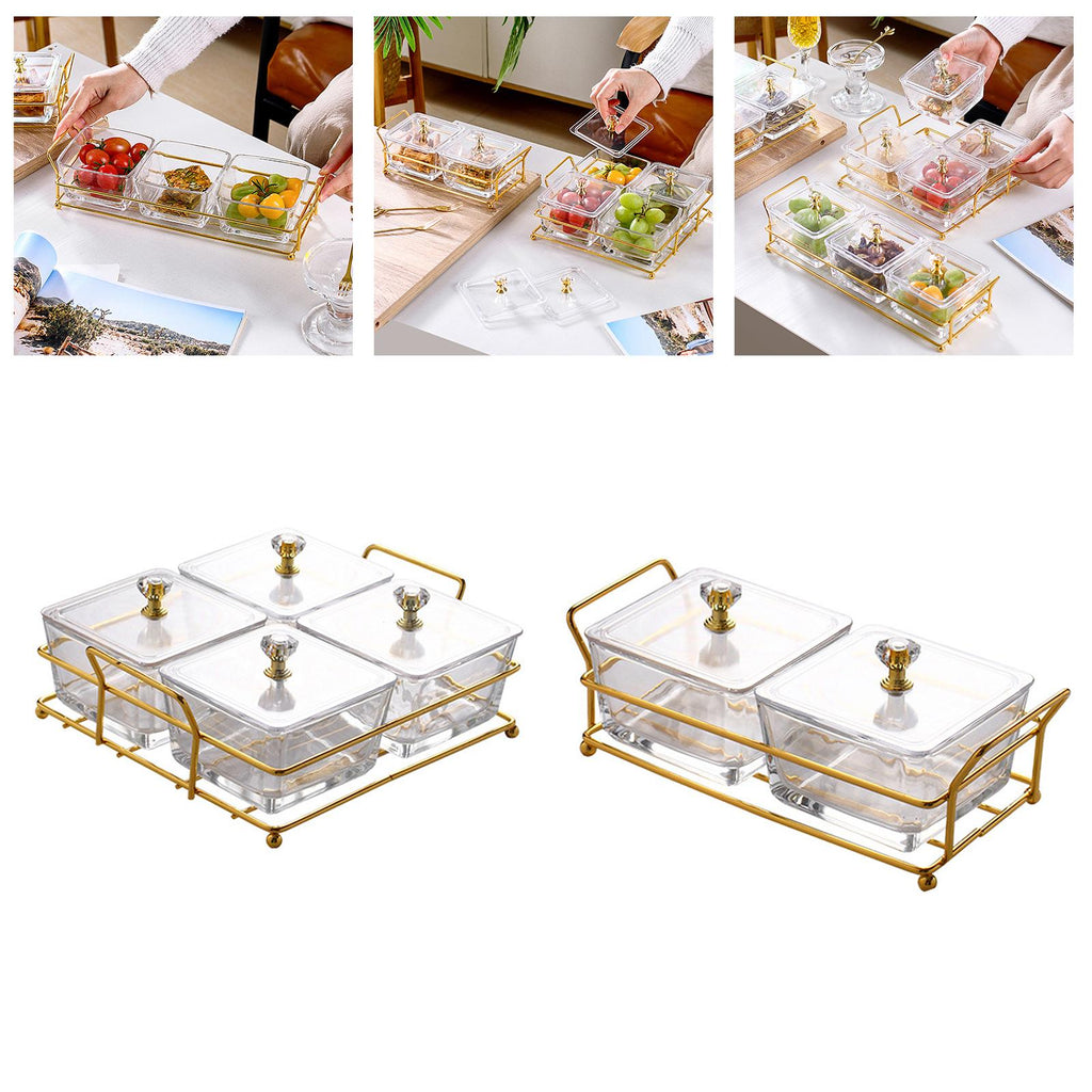 Features: Compartmentalized snack plate, classified store, with lid and stand, stable, dustproof, convenient for use.