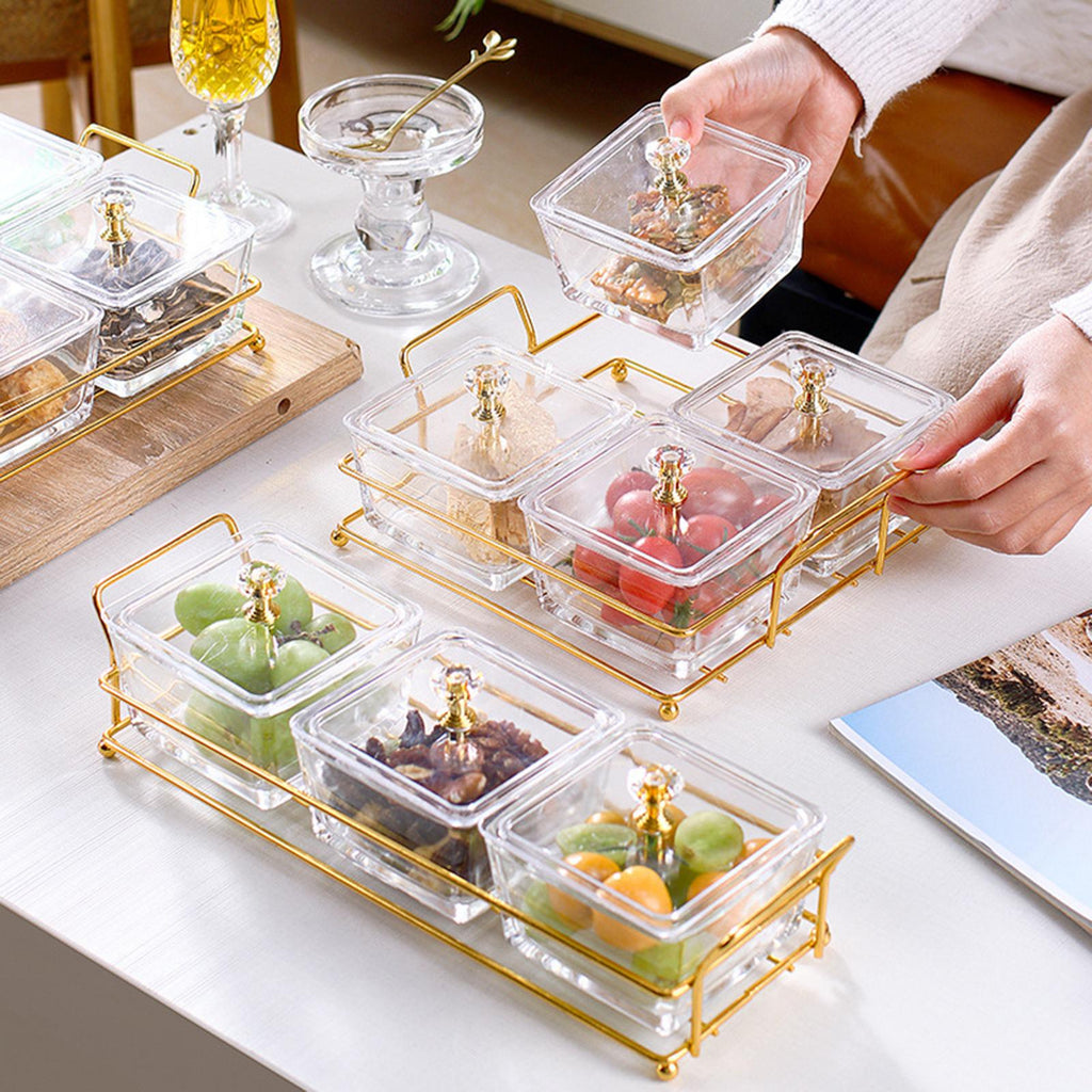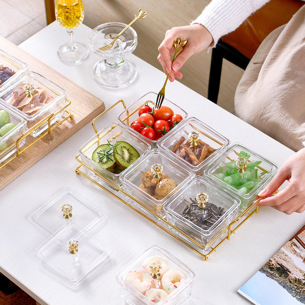 Features: Compartmentalized snack plate, classified store, with lid and stand, stable, dustproof, convenient for use.