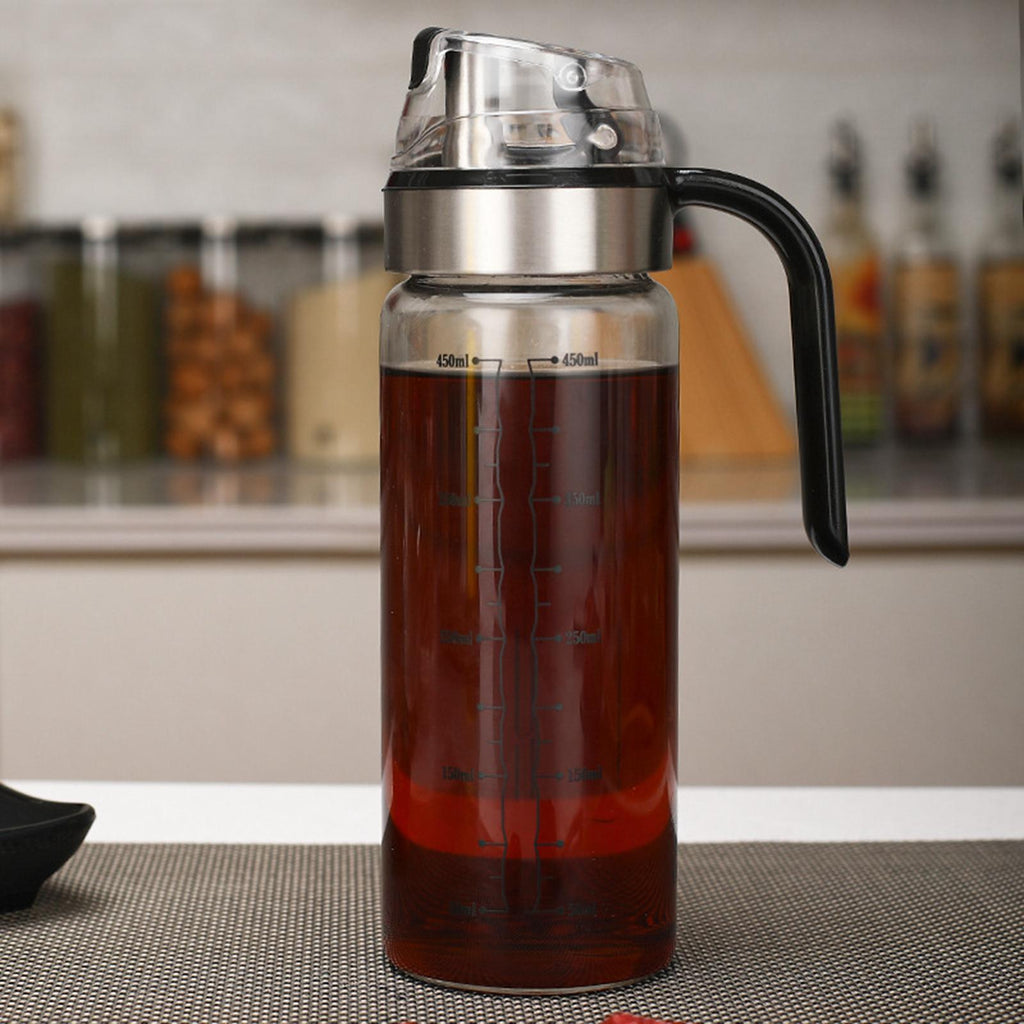 【Kitchen Tool】: This glass oil pot is gravity sensitive and automatically opens the lid, making it ideal for filling olive oil, soy sauce, syrup, etc.
