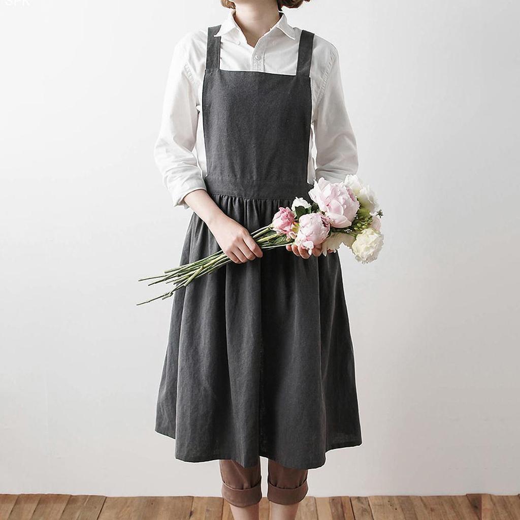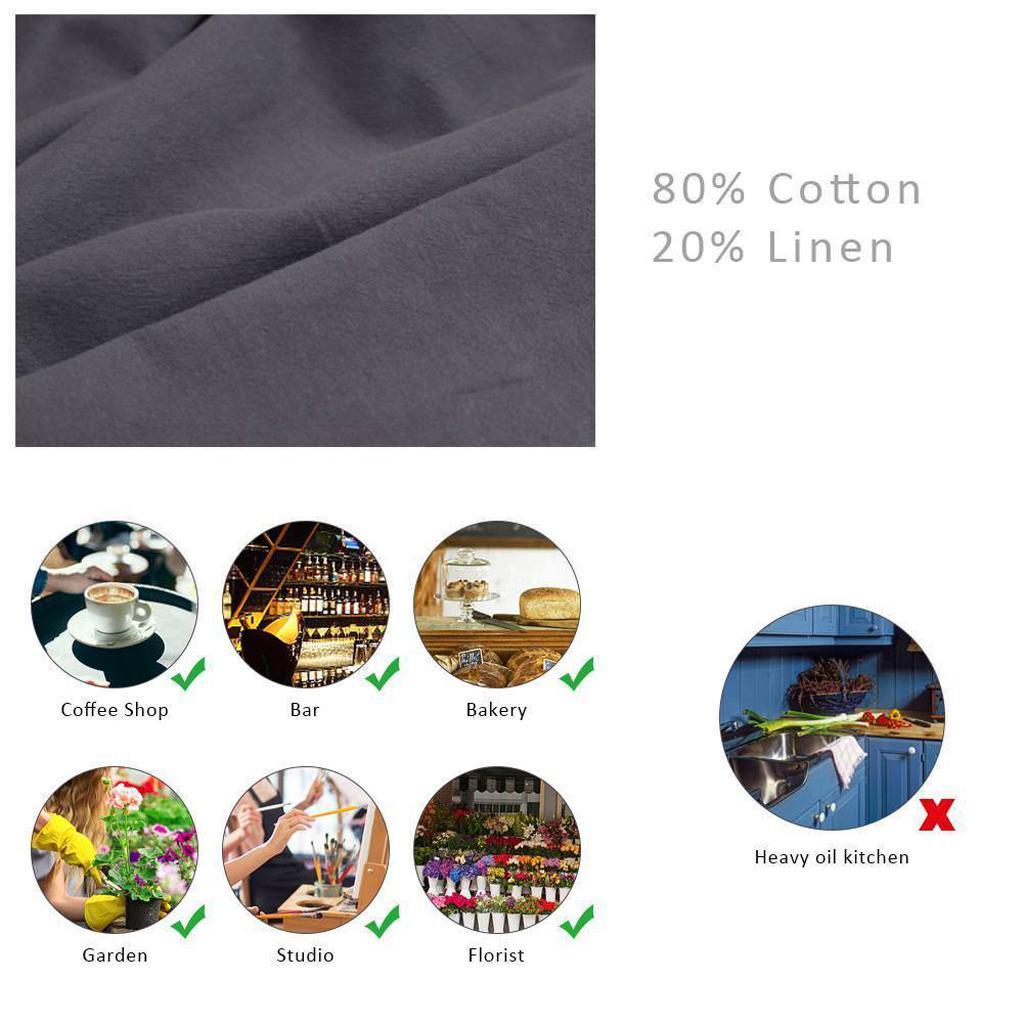 The apron is made of cotton and linen rather than chemical fiber waterproof fabric, and enjoys certain texture and thickness.