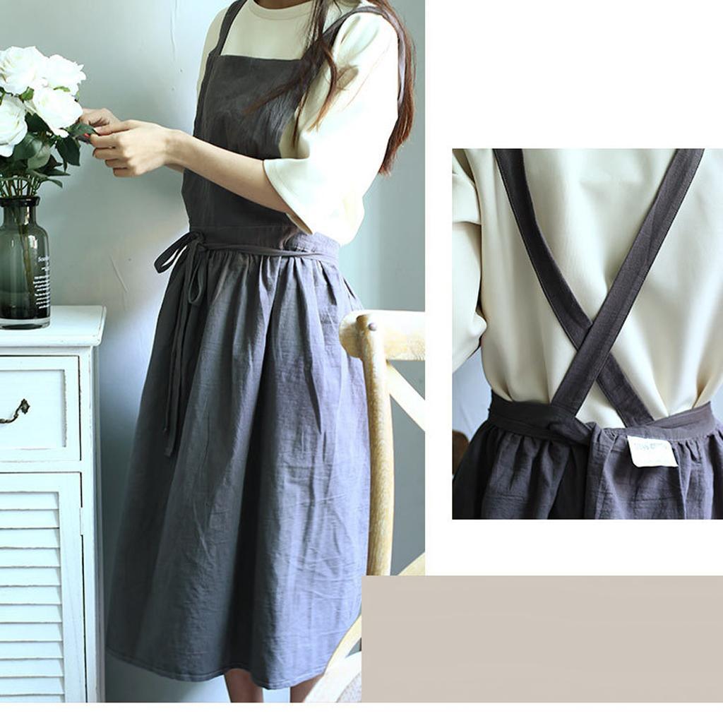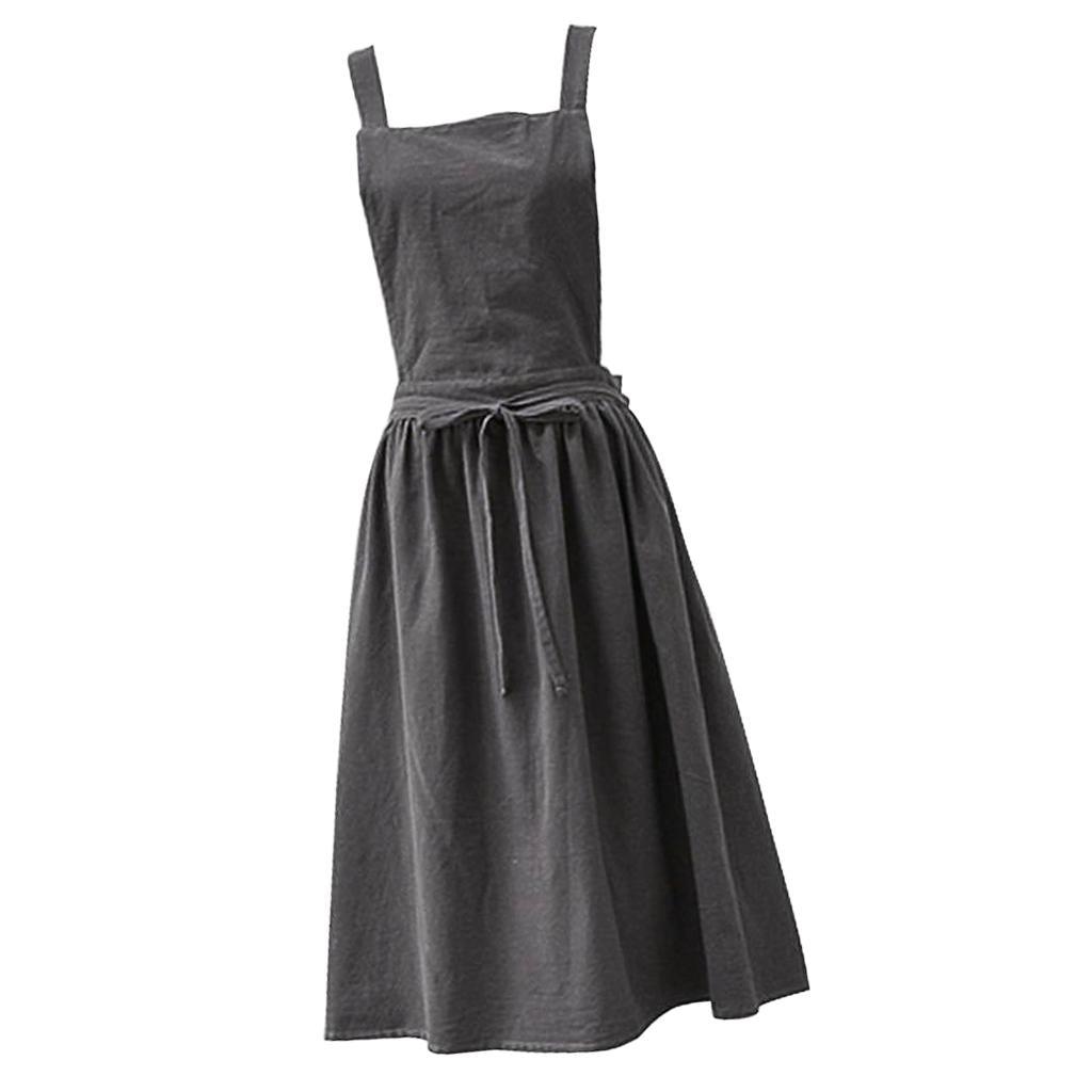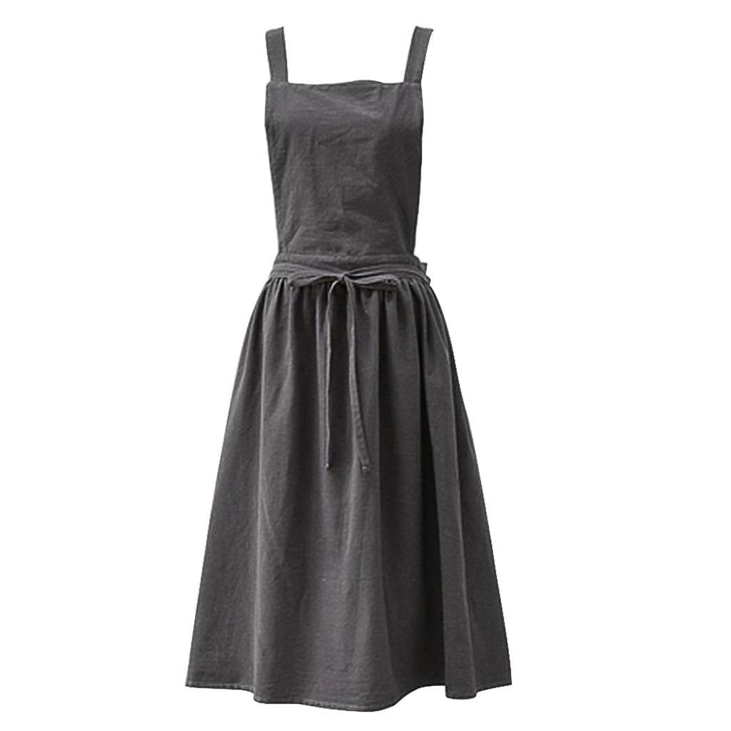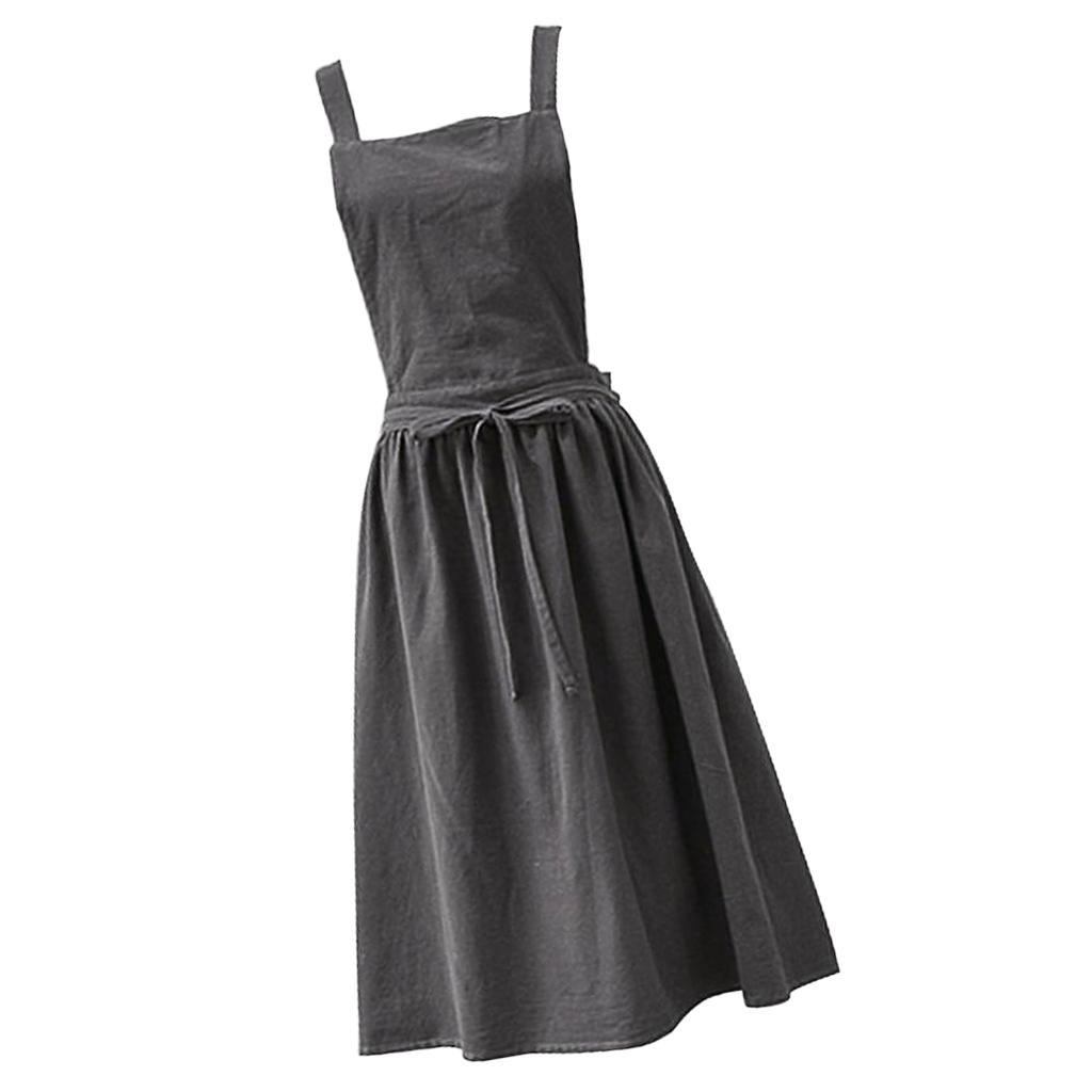 Maxbell Cotton Linen Sleeveless Apron Kitchen Cooking Baking Antifouling Apron Grey