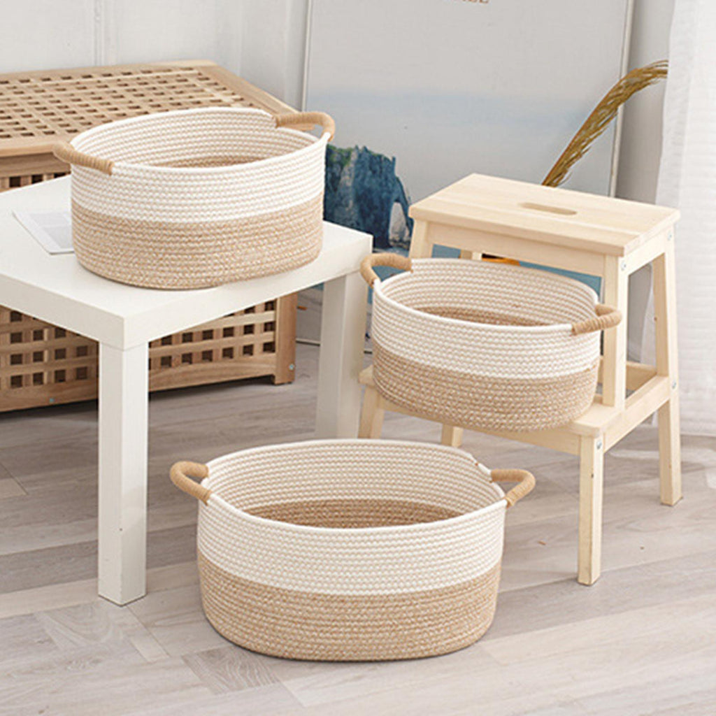 - 【Portable Design】This Woven Rope Storage Basket features handles, great for picking toys or carrying, firm and does not collapse, beautiful and practical