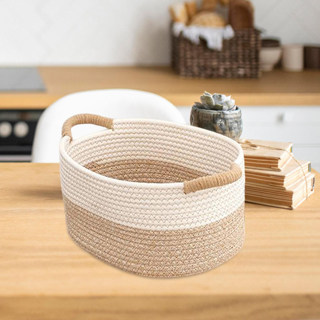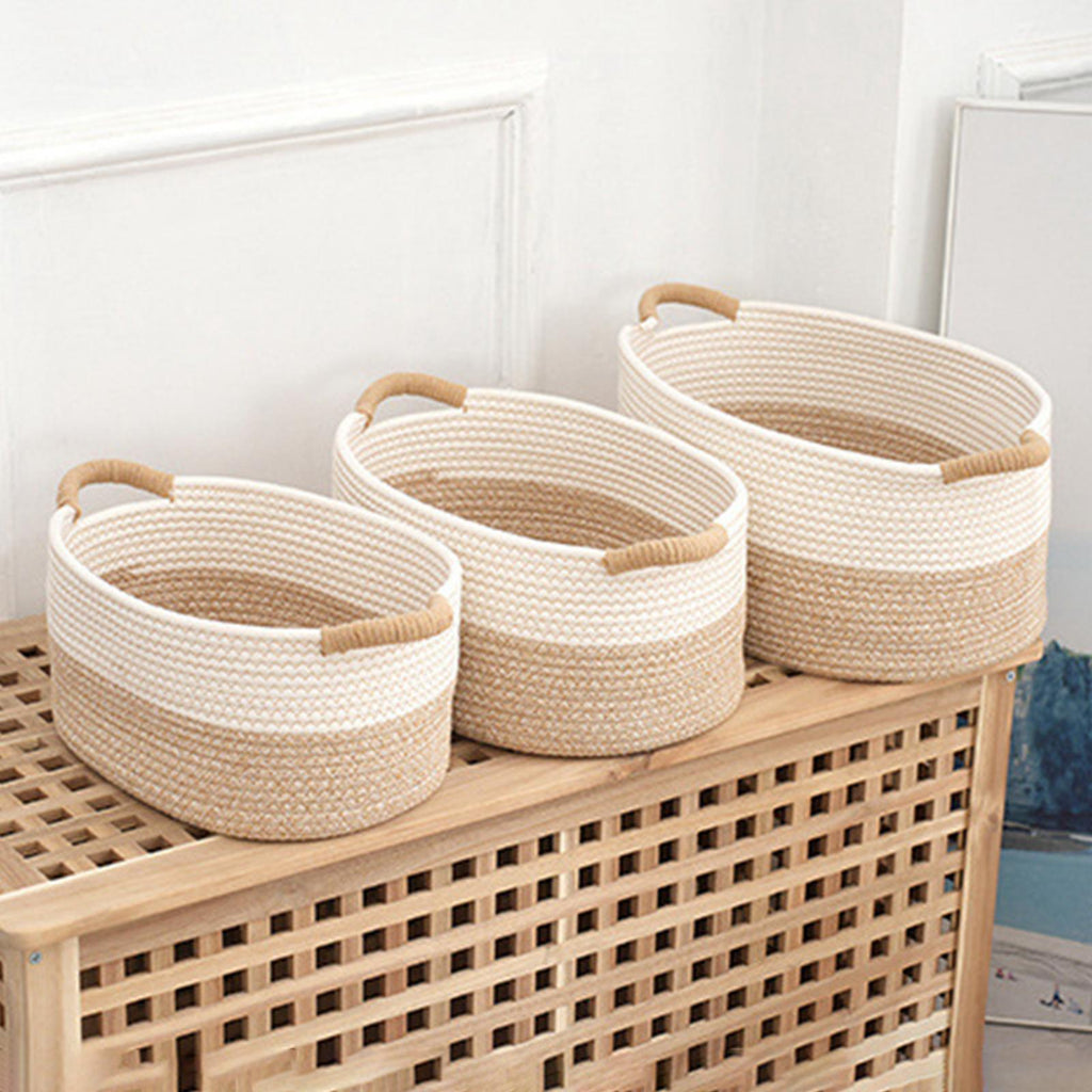 Cotton Rope Woven Basket for Organizing Sturdy for Clothes Magazines Kitchen 38cmx29cmx19cm