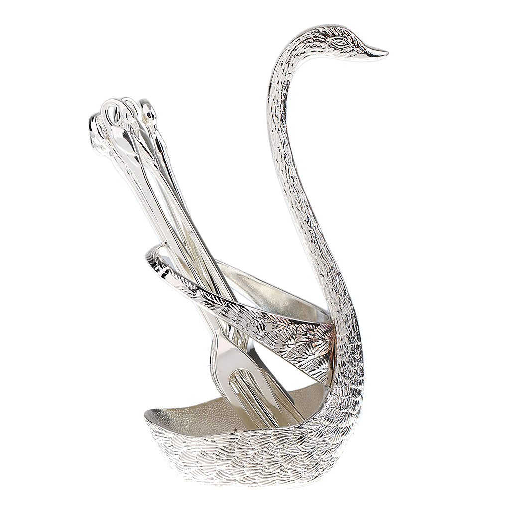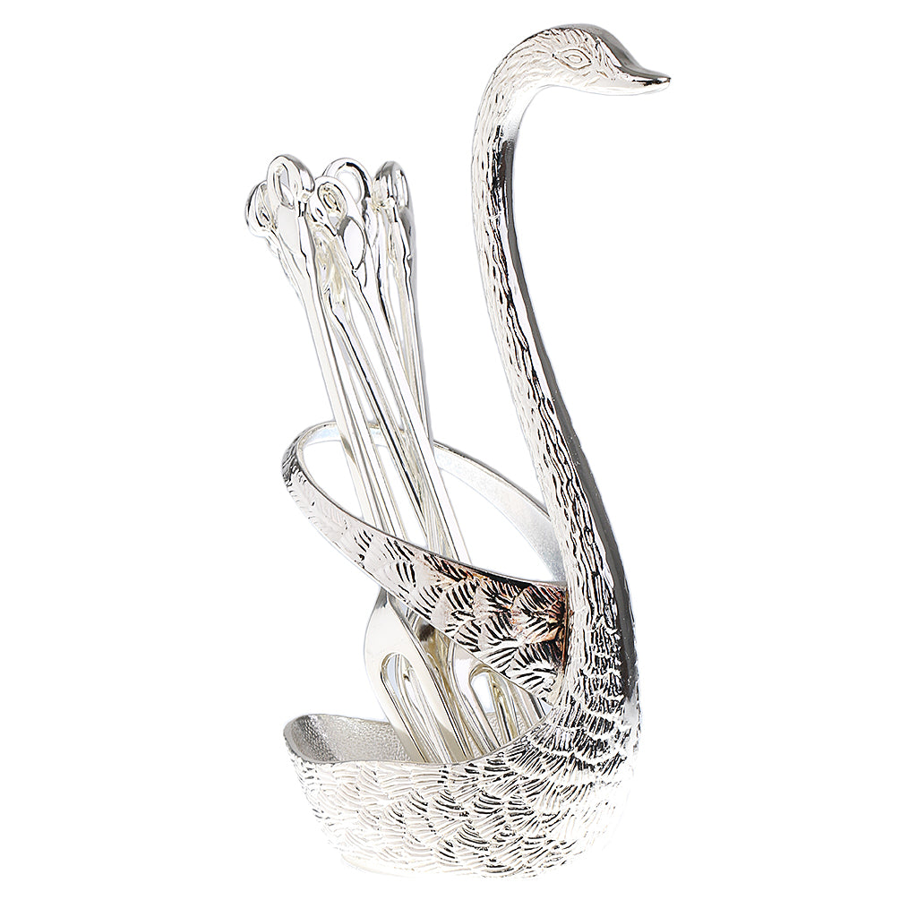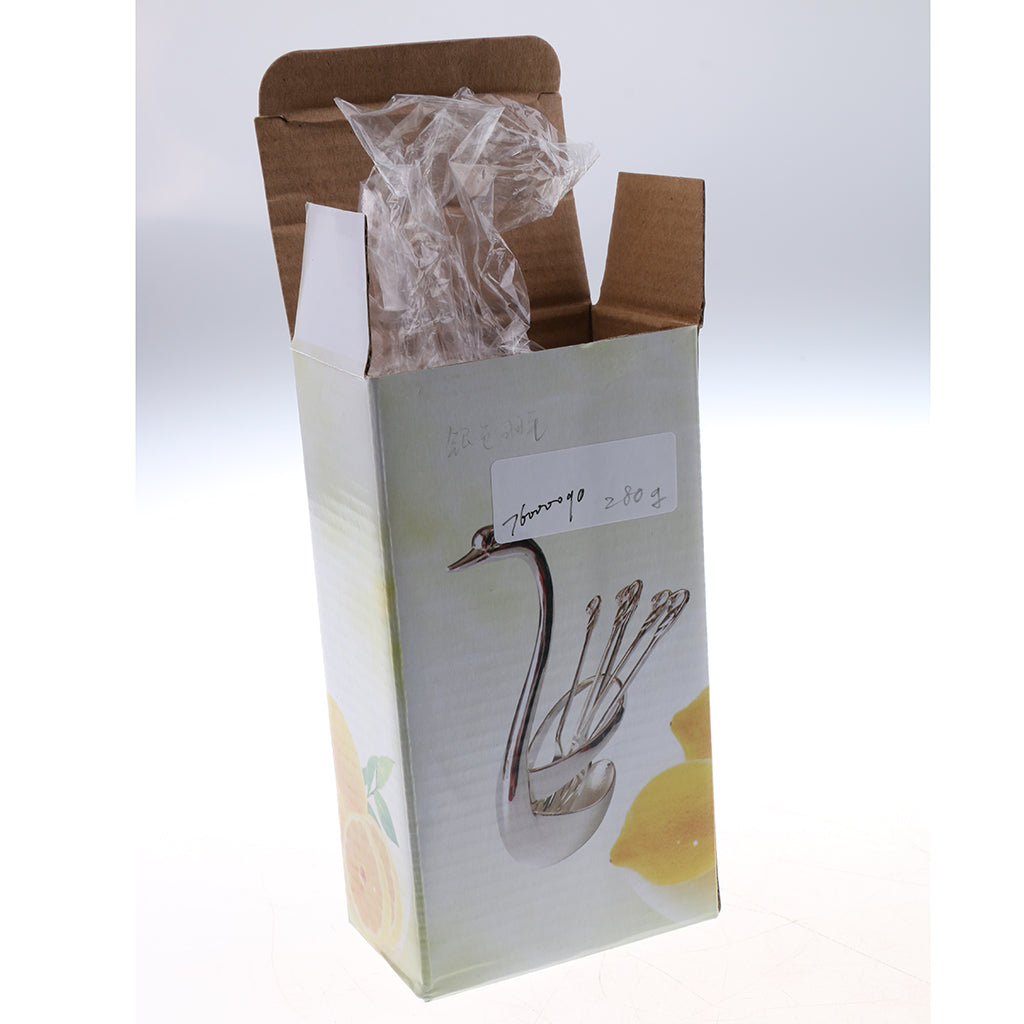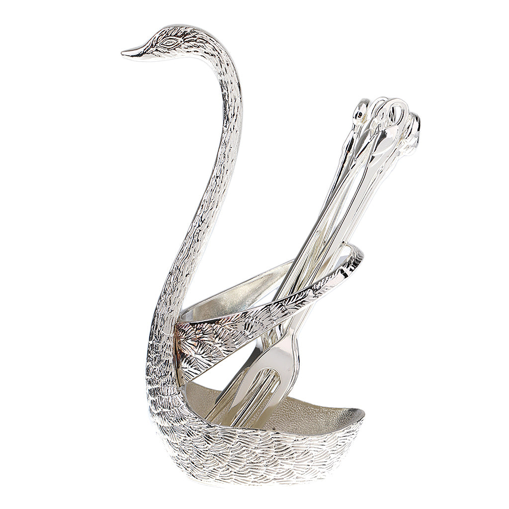 Swan Holder Stylish Fruit Food Fork Spoon Holder Base and 6 Forks