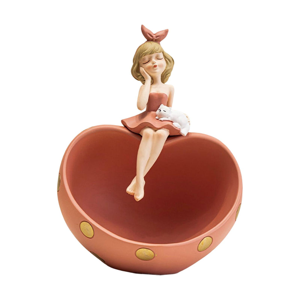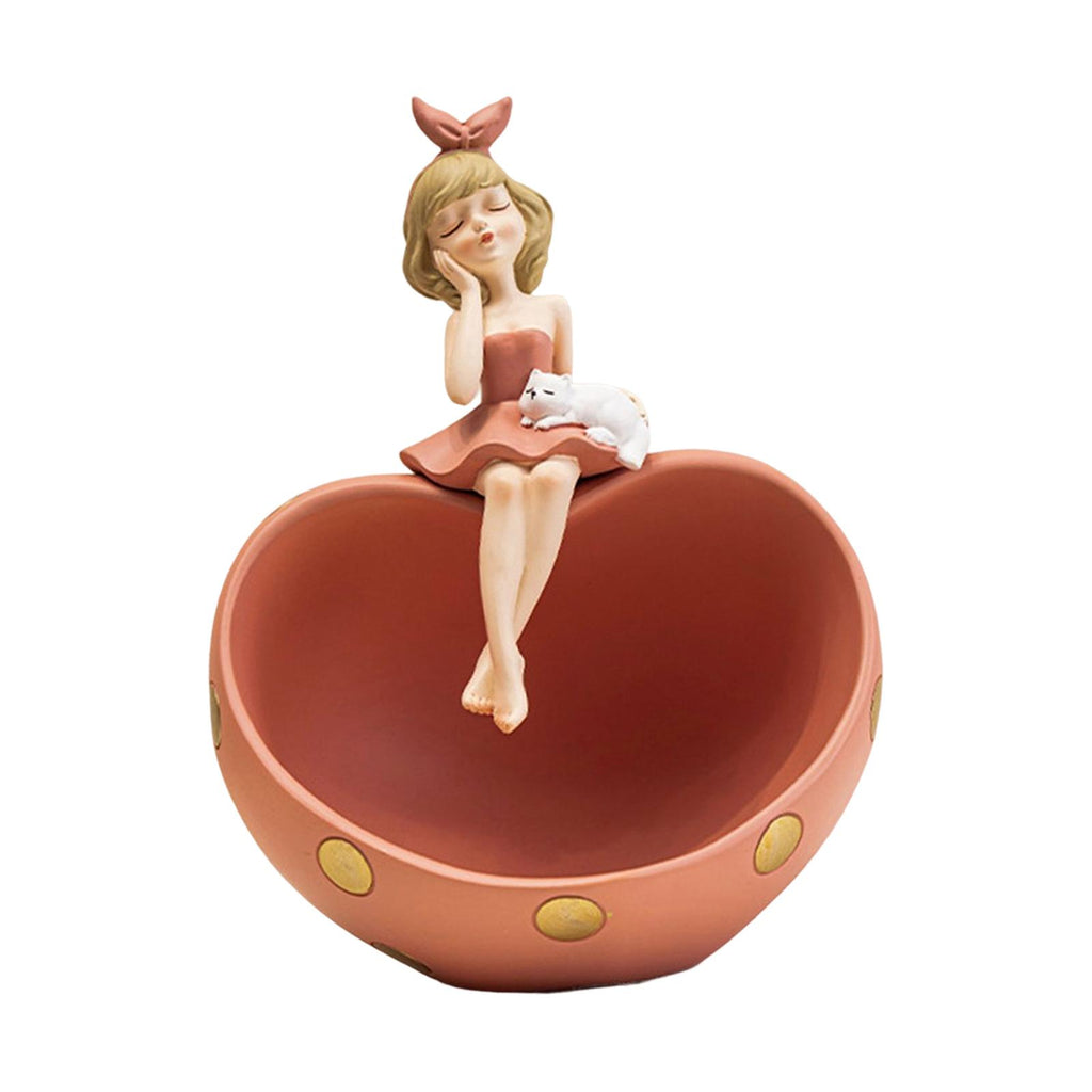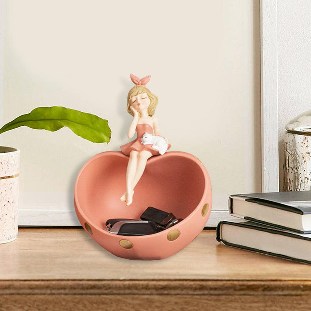 Maxbell Desk Resin Girl Statue Tray Ornament Hallways Entrance Organizer Container Pink