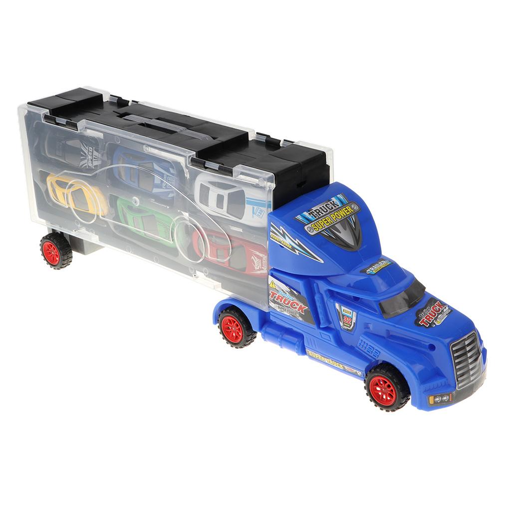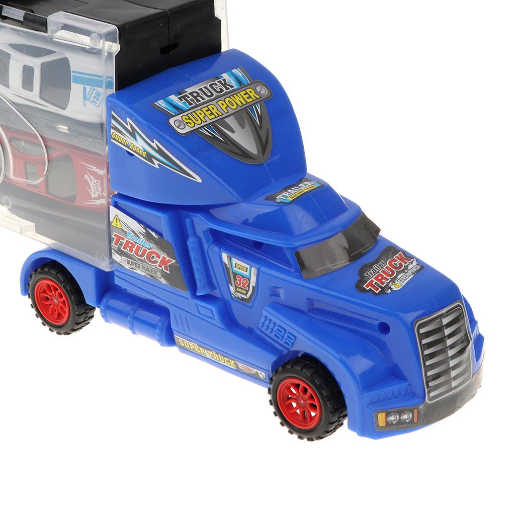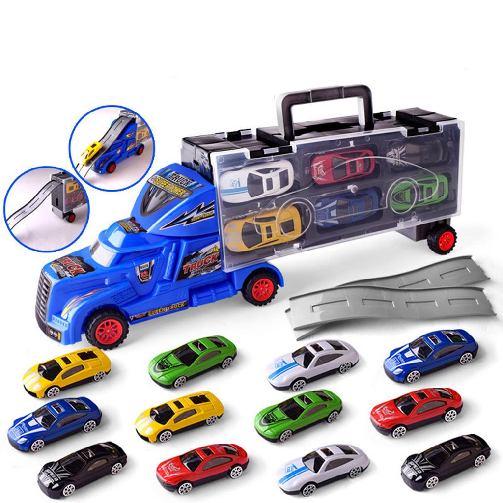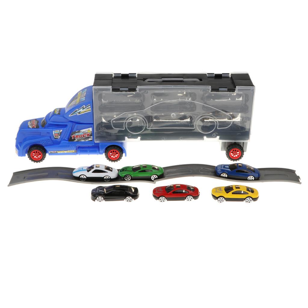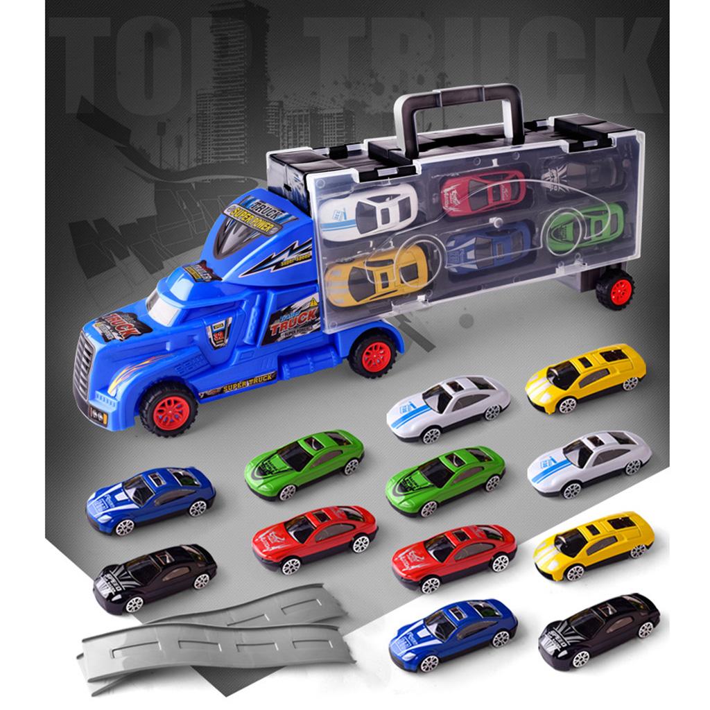 Maxbell Diecast Alloy Container Truck w/ 12 Car Vehcile Playset Toy Racing Car Blue