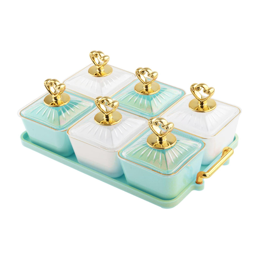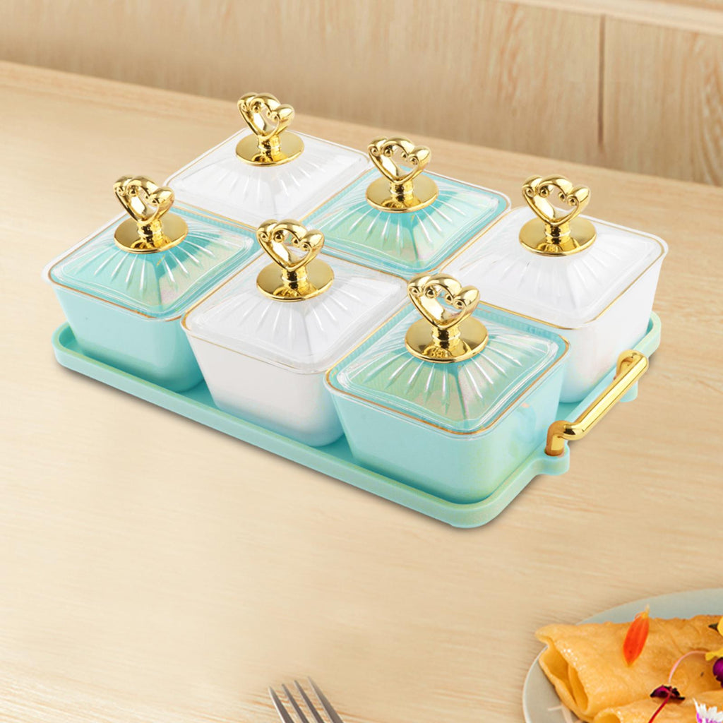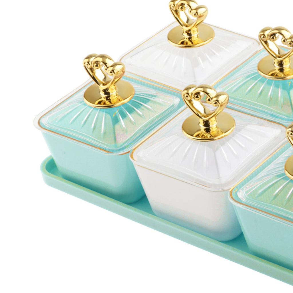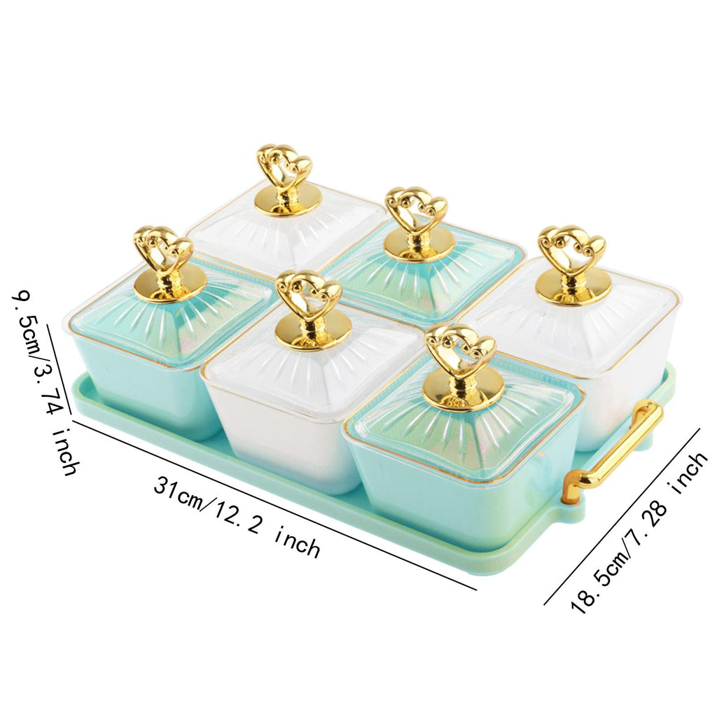 【Feature】: Candy nuts dish with lid, can effectively seal the food or seasoning inside the container, dustproof, with tray, easy to move