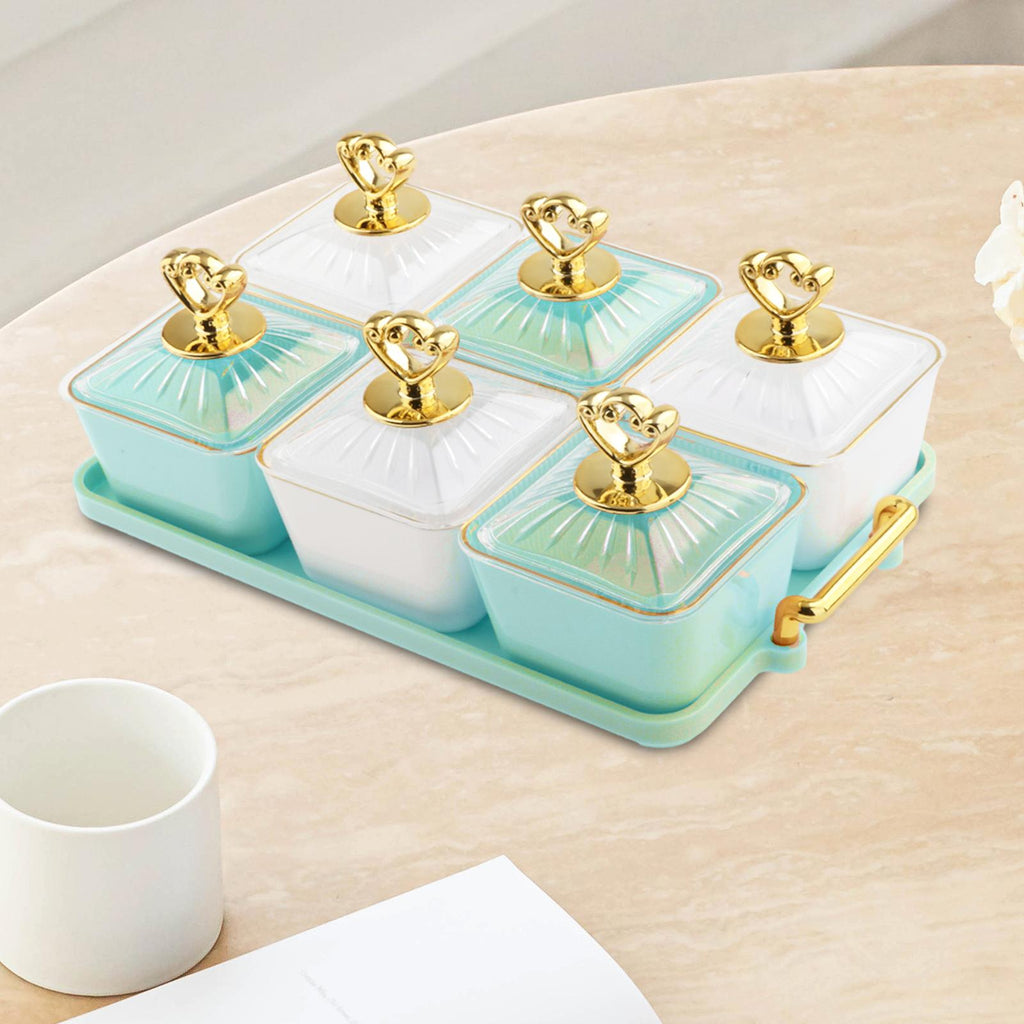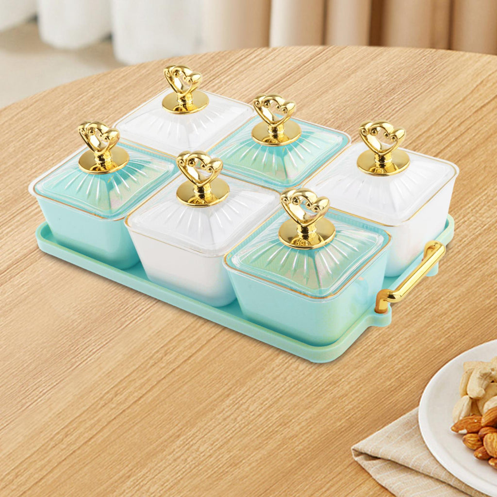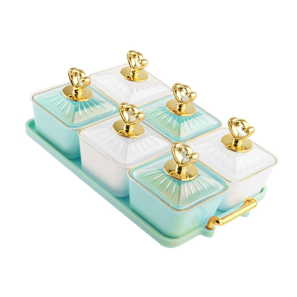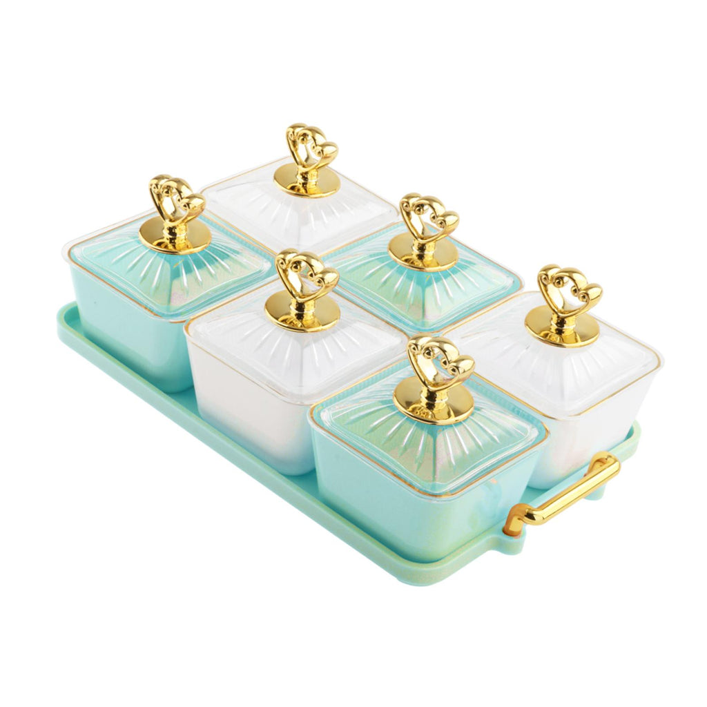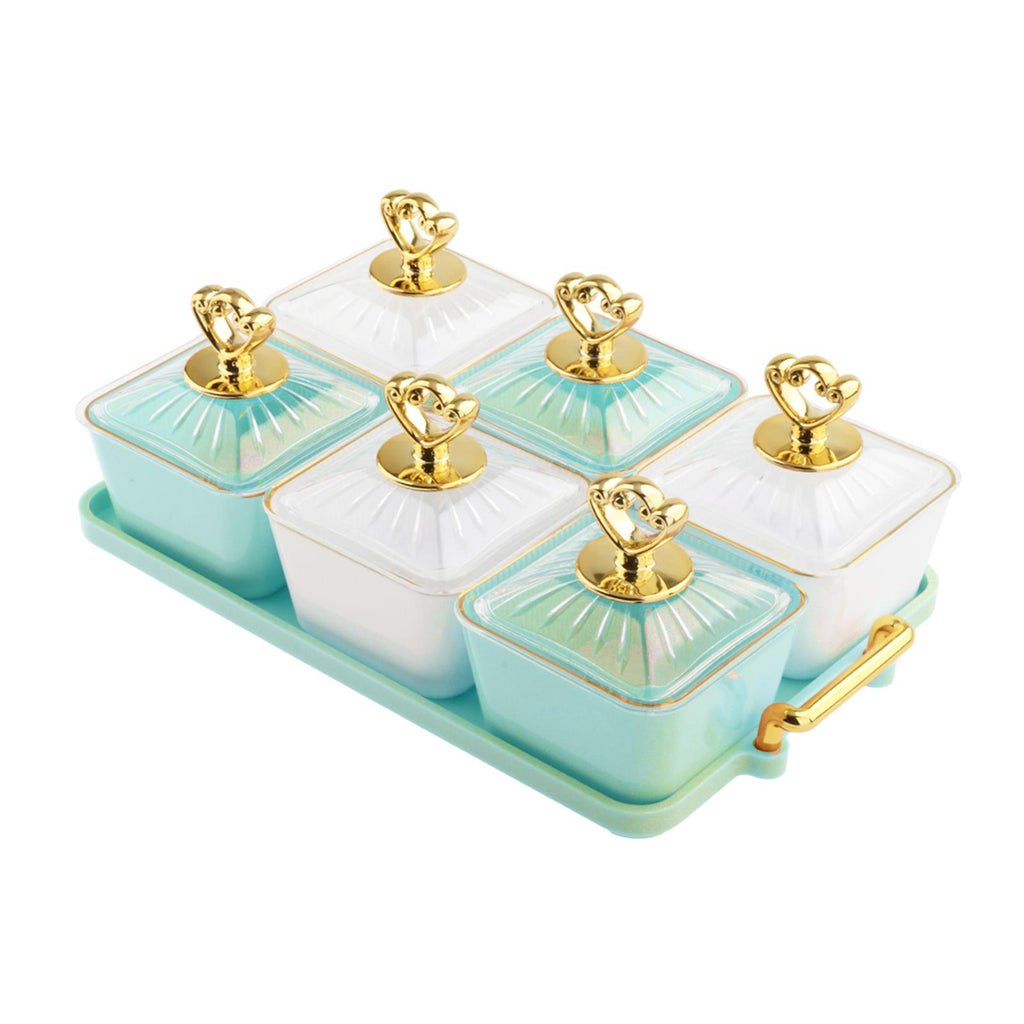 【Feature】: Candy nuts dish with lid, can effectively seal the food or seasoning inside the container, dustproof, with tray, easy to move