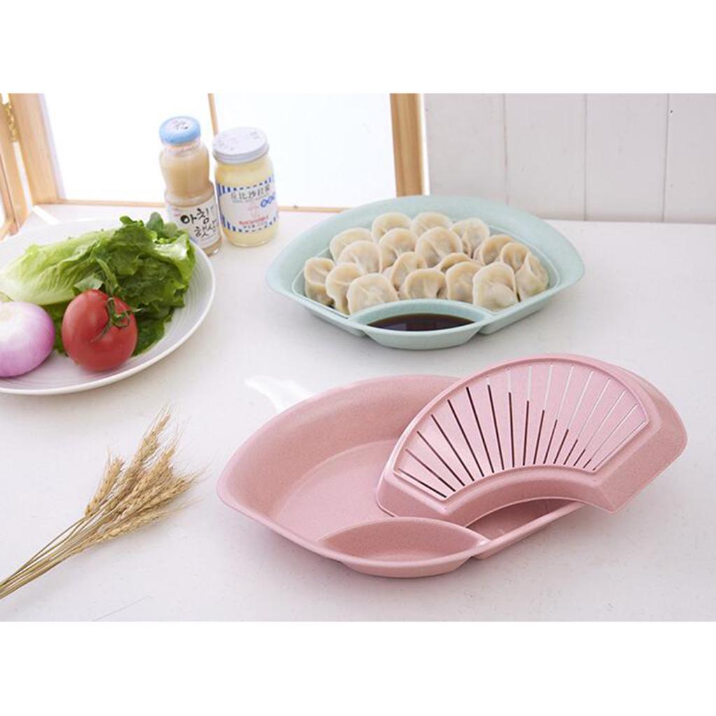 Maxbell Double Drainage Dumpling Dishes Fruit Plate fan-shaped Kitchen Pan Pink