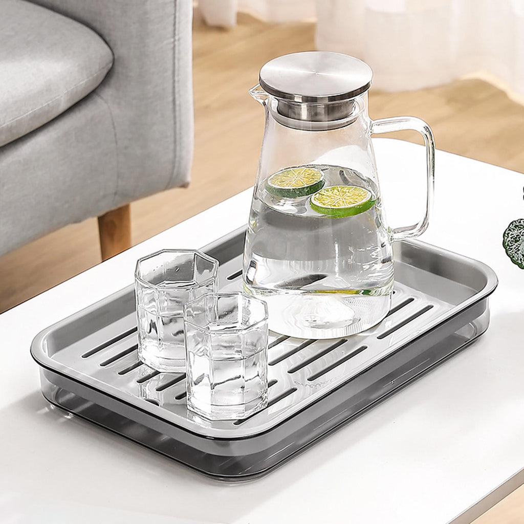 【Large Drainer Board】: This rectangular tray suitable for the living room and kitchen, with a draining plate function to prevent water drip onto countertop.