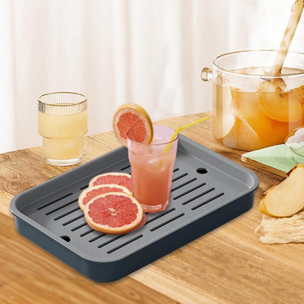 【Large Drainer Board】: This rectangular tray suitable for the living room and kitchen, with a draining plate function to prevent water drip onto countertop.