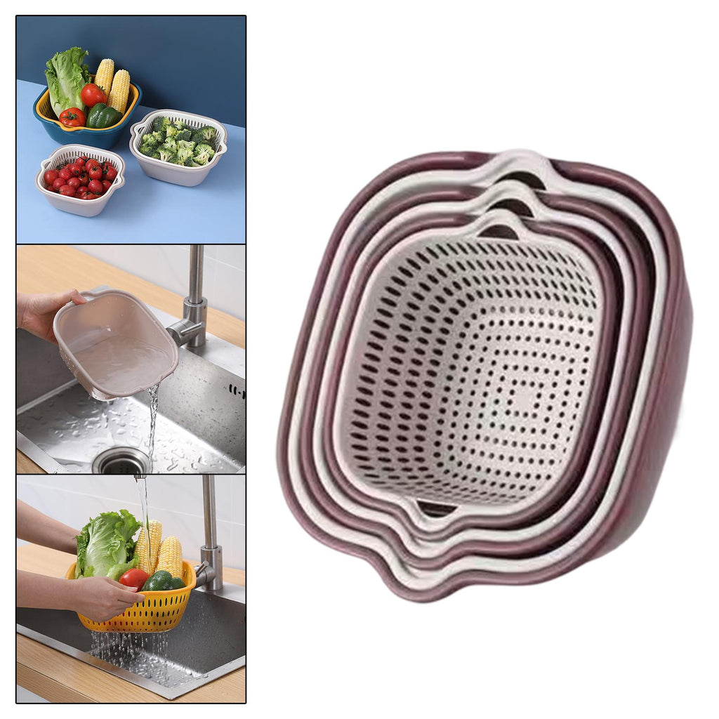 Maxbell Drain Colander Kitchen Gadgets Vegetable Washing Basket for Fruits Tomatoes purple
