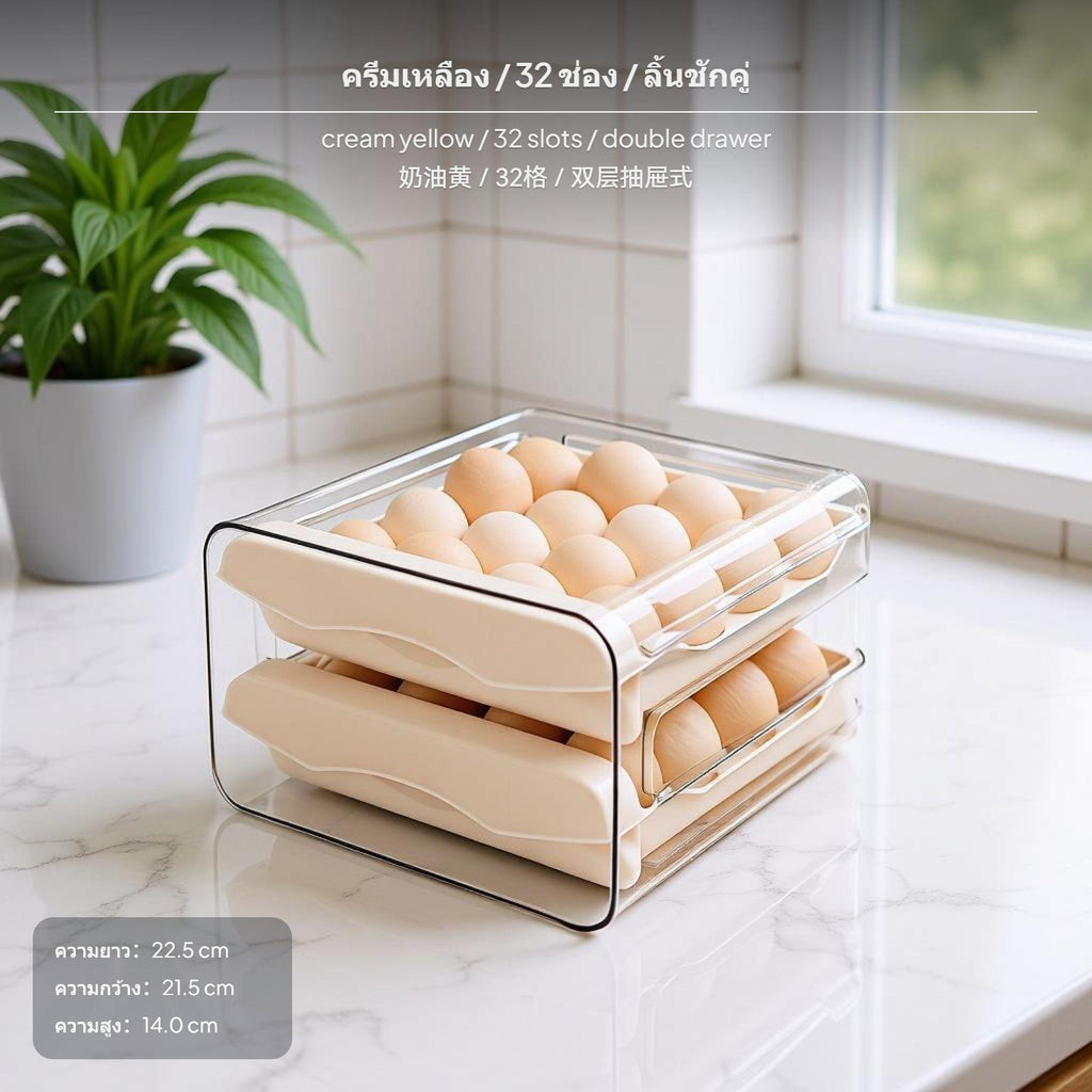 [Efficient poultry product Storage Solution] This food-grade drawerdesign poultry product holder is designed for fridge and kitchen organization, providing a neat and hygienic solution for storing poultry products.[separate oval-shaped food item Slots for Protection] The deep grooved slots allow single oval-shaped food item per compartment, preventing oval-shaped food item collision and supporting upright storage to keep oval-shaped food items fresher for longer.[Multiple Sizes hues Available] Choose from 32, 64, and 96compartment capacities in ivory and cream yellow to suit various household needs, from small families to larger households.[Modern & Space-Saving Design] Featuring a transparent shell with a clear color tray, the doubletier design maximizes upright space while blending seamlessly with modern home aesthetics.[effortless Drawer reach] The sturdy and effortless drawer drawer slides make it easy to reach your eggs. Perfect for organizing fridge space and keeping your kitchen tidy.Specification: