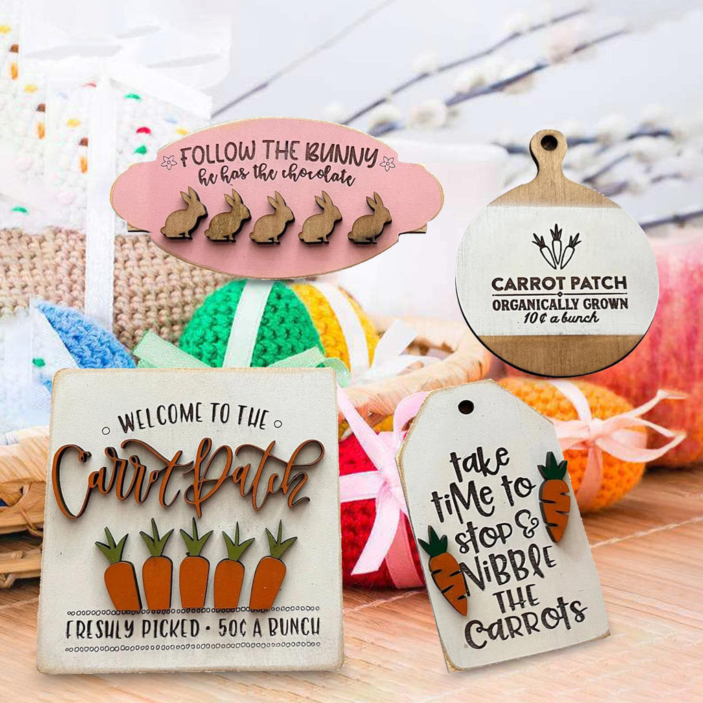 【Application】Tiered Tray Decorative Easter Wooden Signs are not only suitable for tiered trays, but can also be placed on table, fireplace, cabinet, bookshelf, or hanging on wall, window, door, tree and other places.