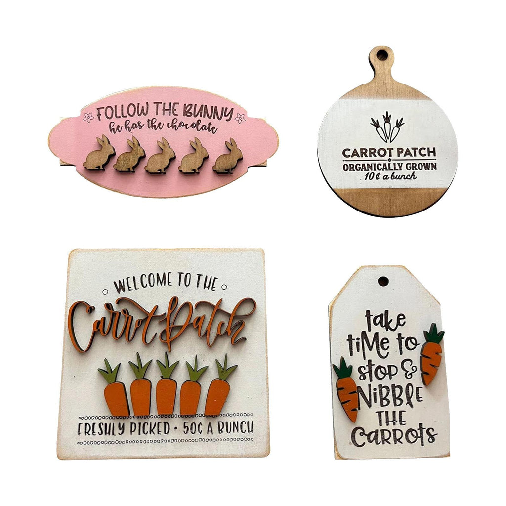 Maxbell Easter Tiered Tray Decor Set Rustic Tiered Tray Signs for Home Kitchen Table 4pcs