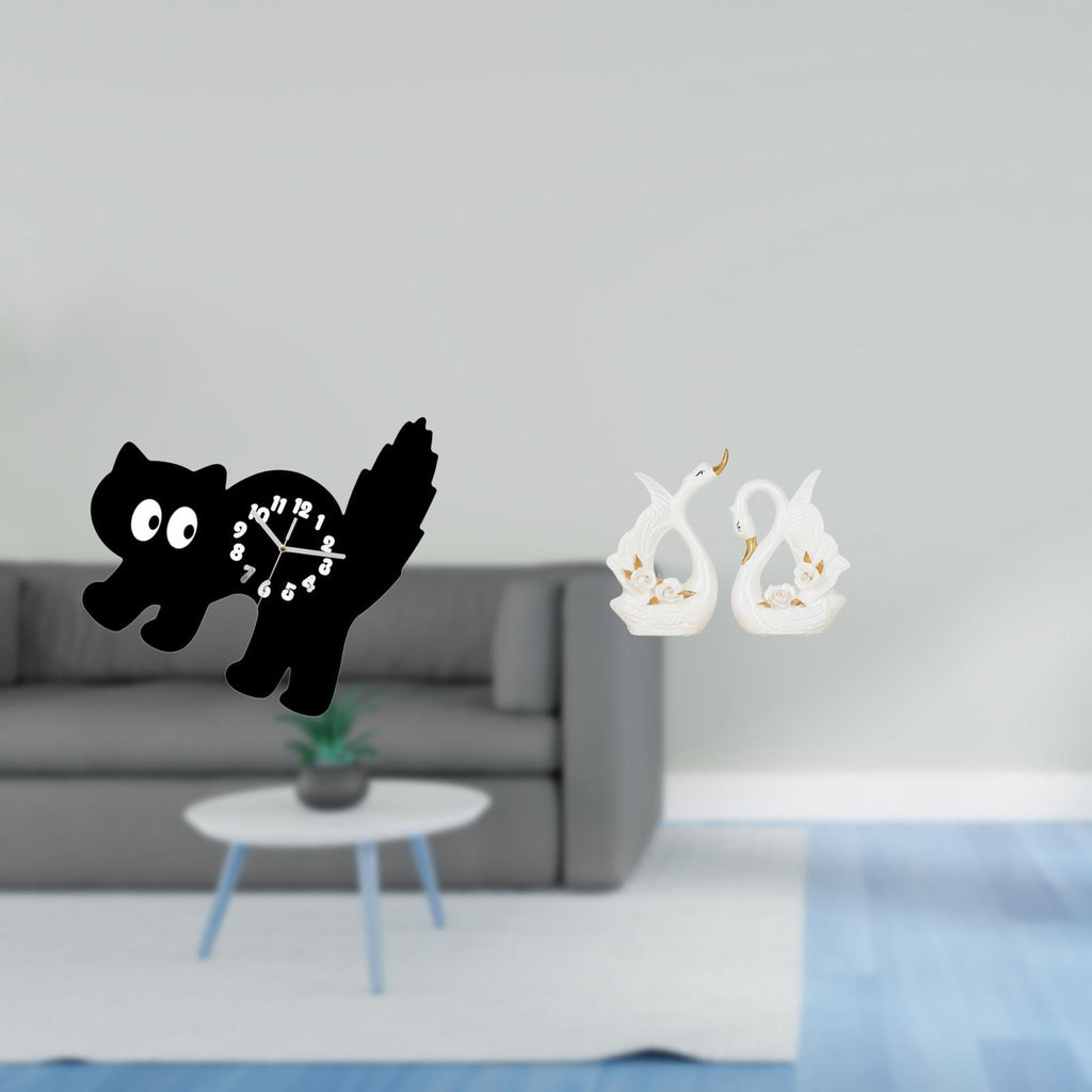 - 【Silent】 This cute cartoon cat clock operates silently ensuring no ticking sound suitable for 2. 【Elegant】 Featuring a sleek swan shape this decorative piece brings elegance with clean lines and soft colors 3. 【Material】 Made from acrylic and ceramic these items are sturdy and refined enhancing your living space 4. 【Size】 The decorative clock and swan figurines have dimensions for display without overwhelming decor 5. 【Gift】 These items make thoughtful gifts for housewarming parties holidays couples and loved ones who appreciate home decor