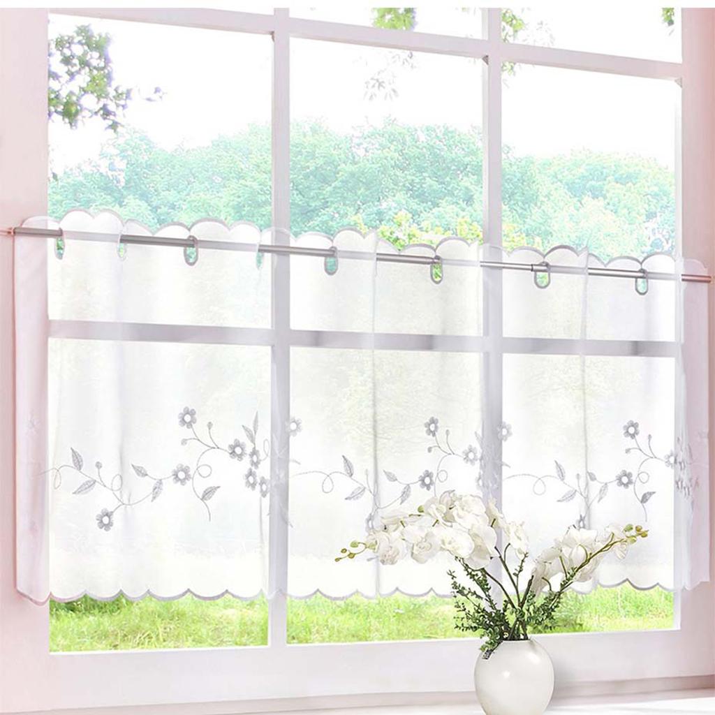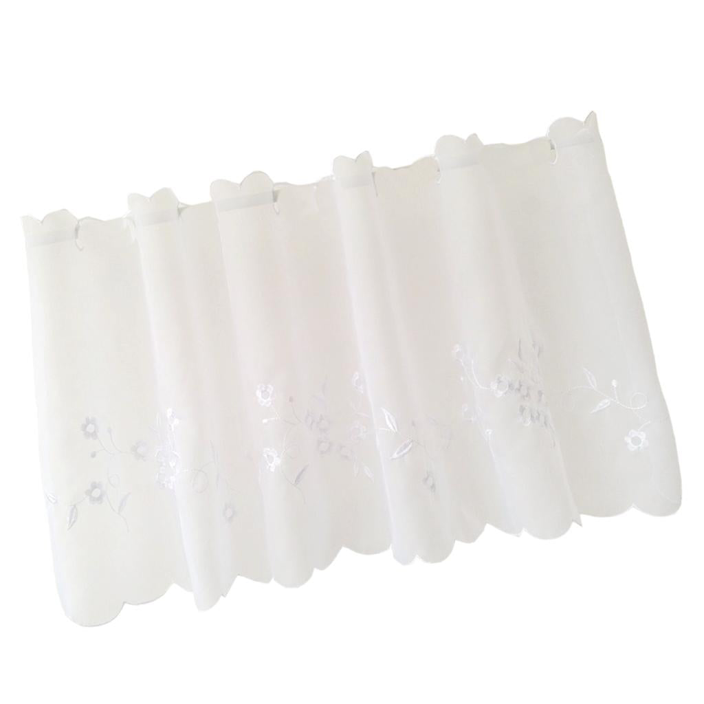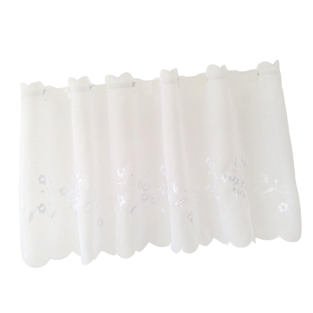 Max Embroidered Window Tiers Kitchen Cafe Half Curtains White 45x90cm