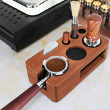 【Espresso Organizer】: This multipurpose Coffee Station Espresso Accessories Organizer features multiple compartments and 1 drawer, including a coffee tamper holder, distributor holder, and espresso portafilter holder among others. It's designed to keep your coffee tools in a place