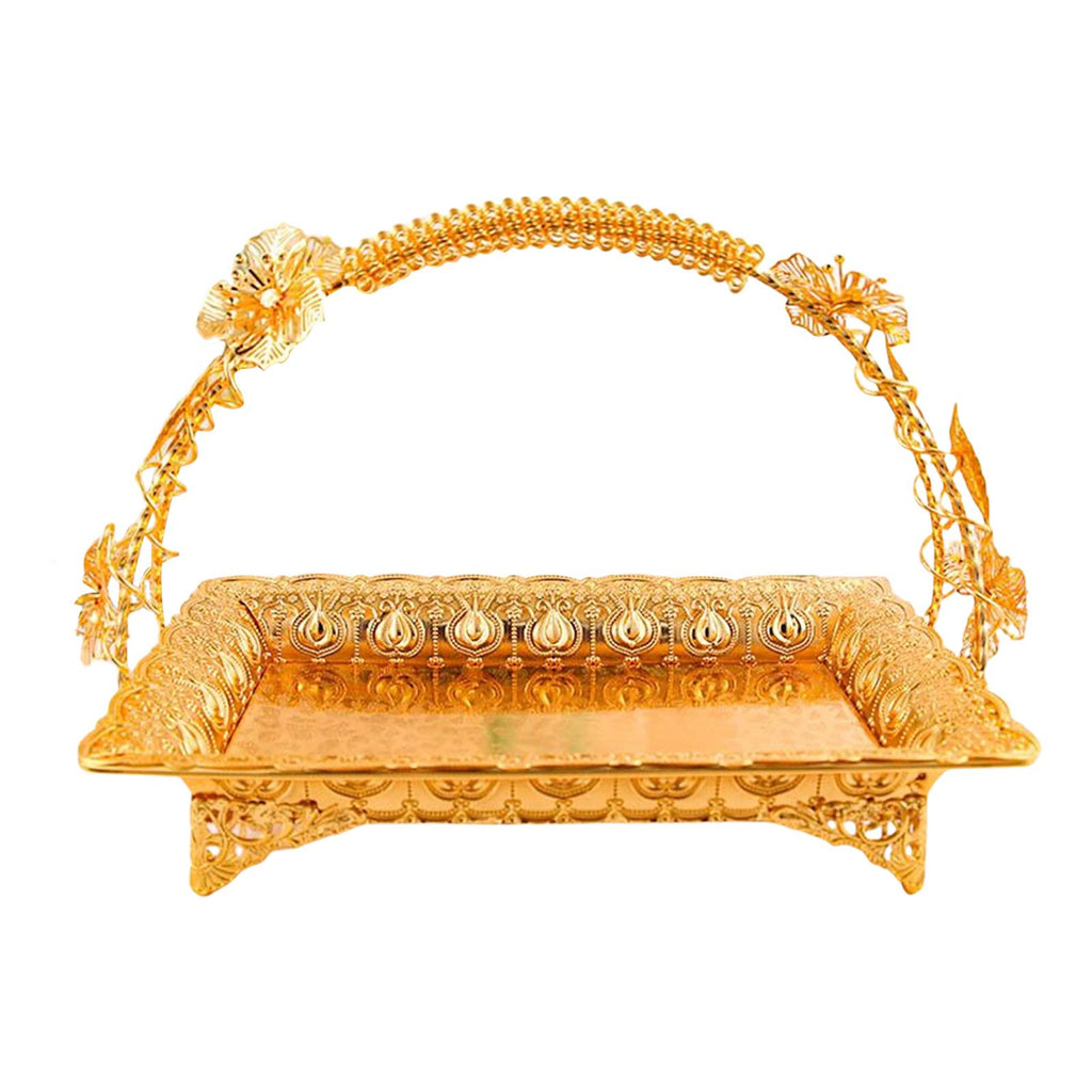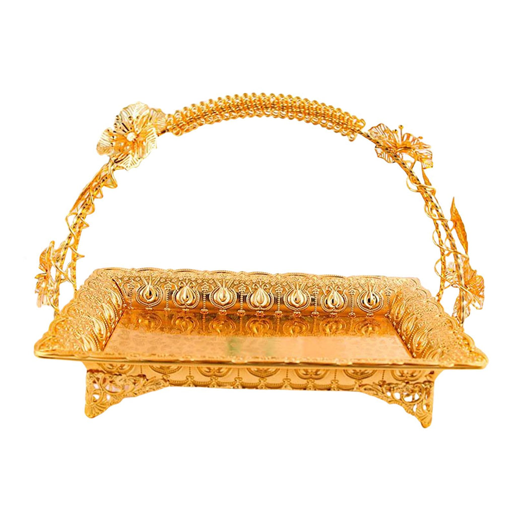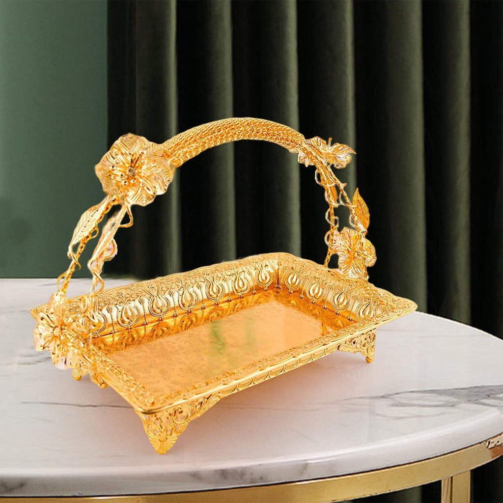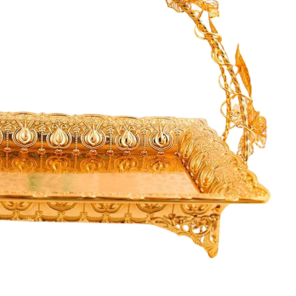 EXQUISITE APPEARANCE: Rectangle fruit serving tray, elegant details, with handle, aureate color, embossment patterns, very practical.