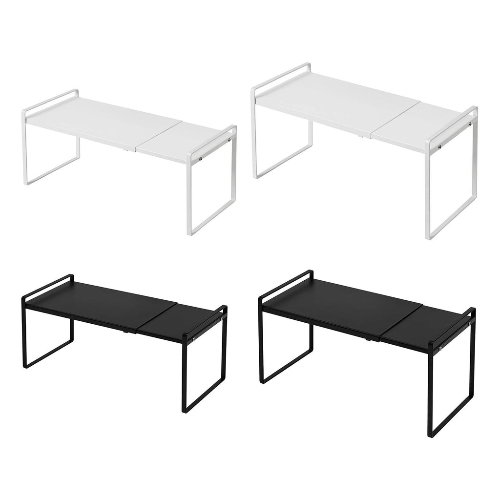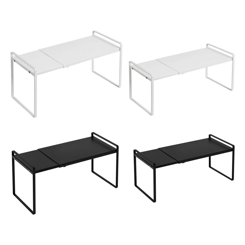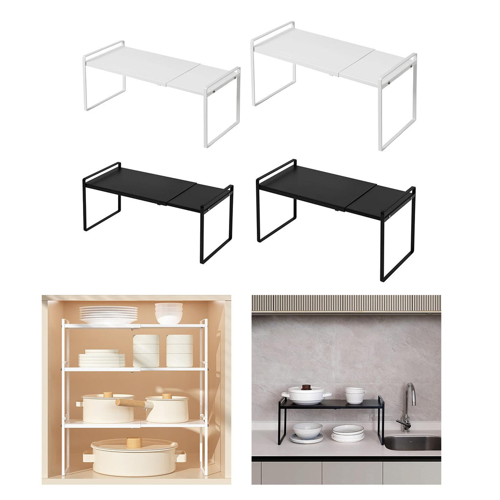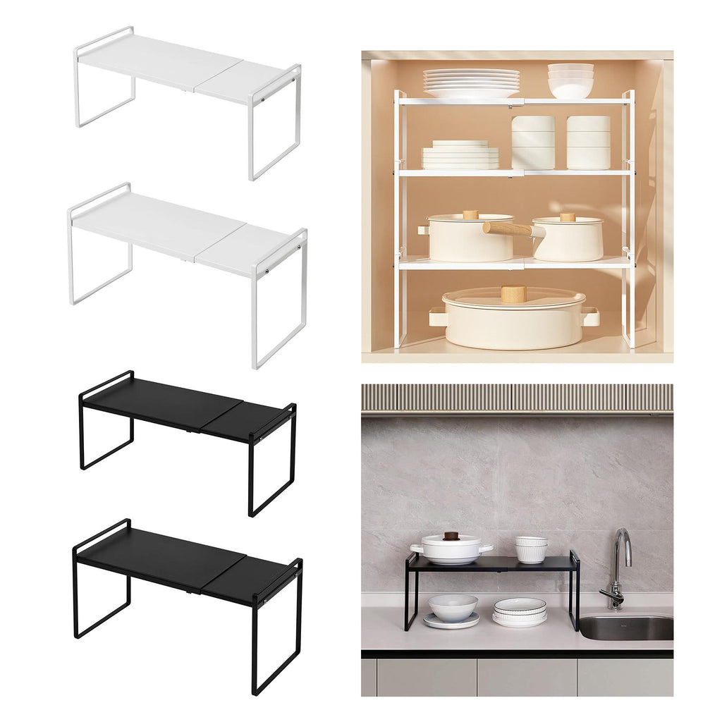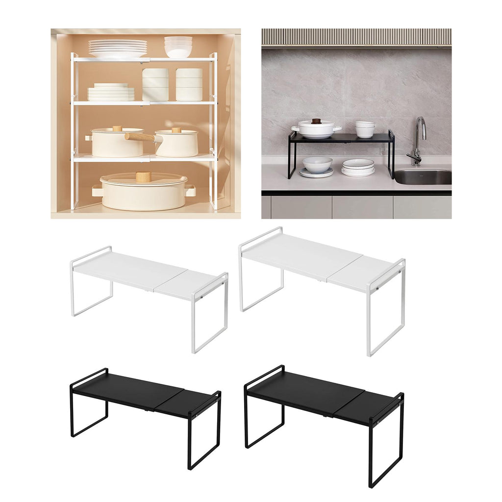 - 【Quality Metal】Expandable Cabinet Shelf Organizer Rack is constructed from sturdy 1mm thick iron with a reinforced support bar to ensure stability and prevent sagging