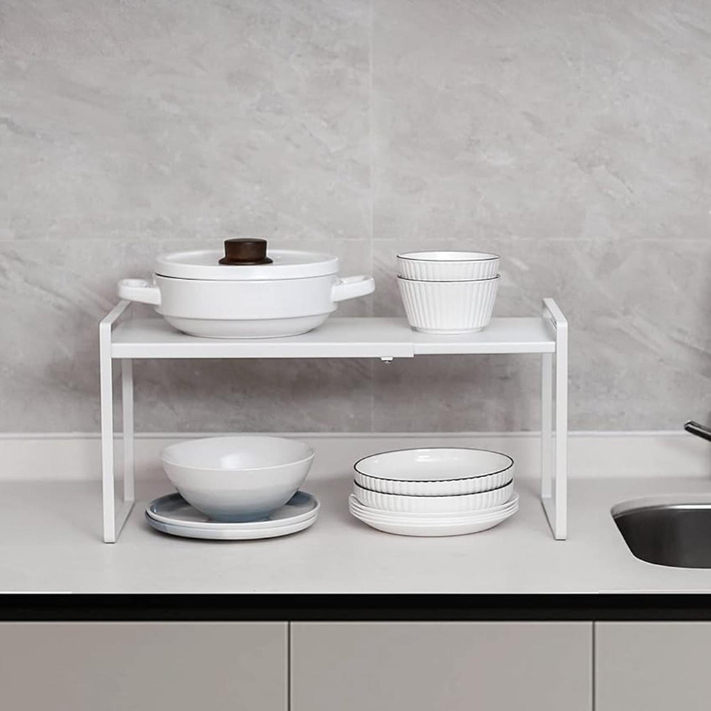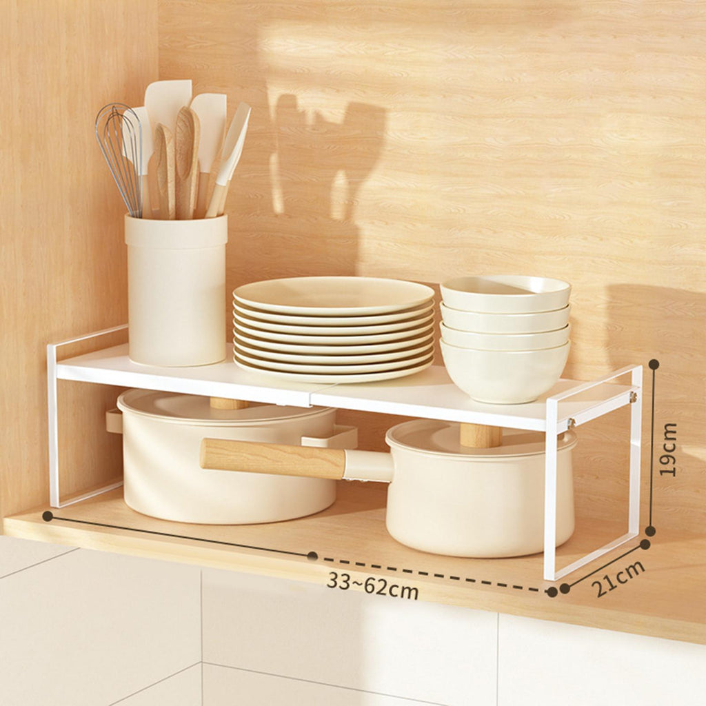 Expandable Cabinet Shelf Storage Rack for Countertop Kitchen Counter Desktop White 19cm H
