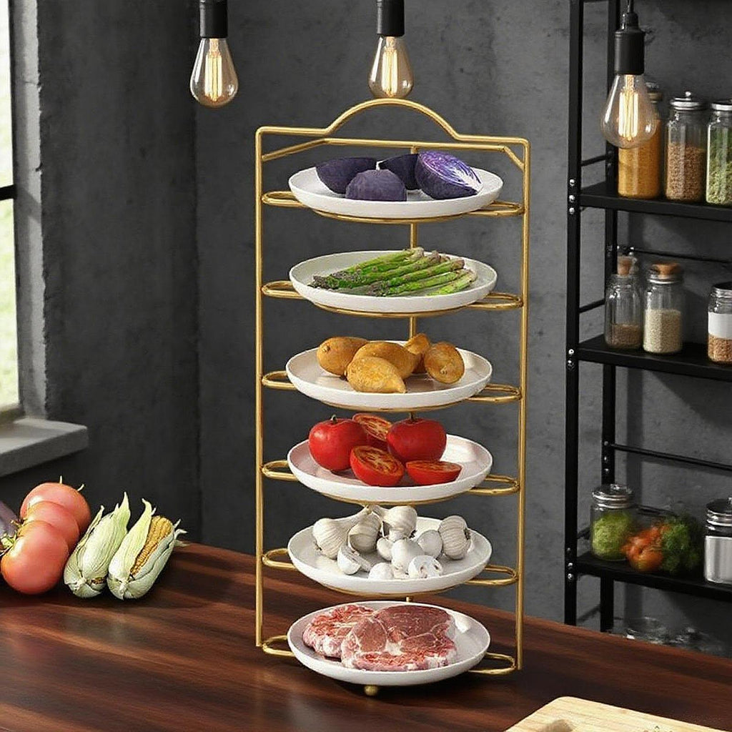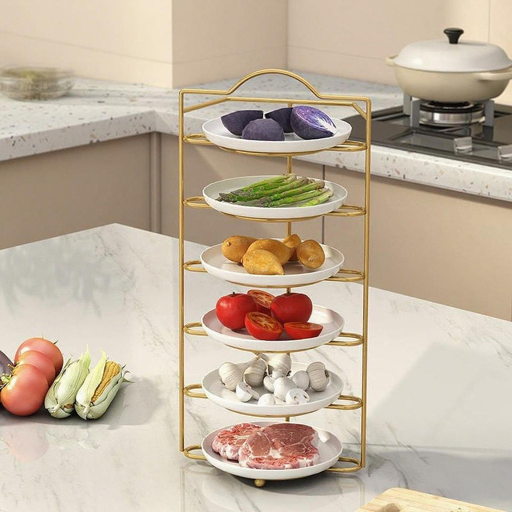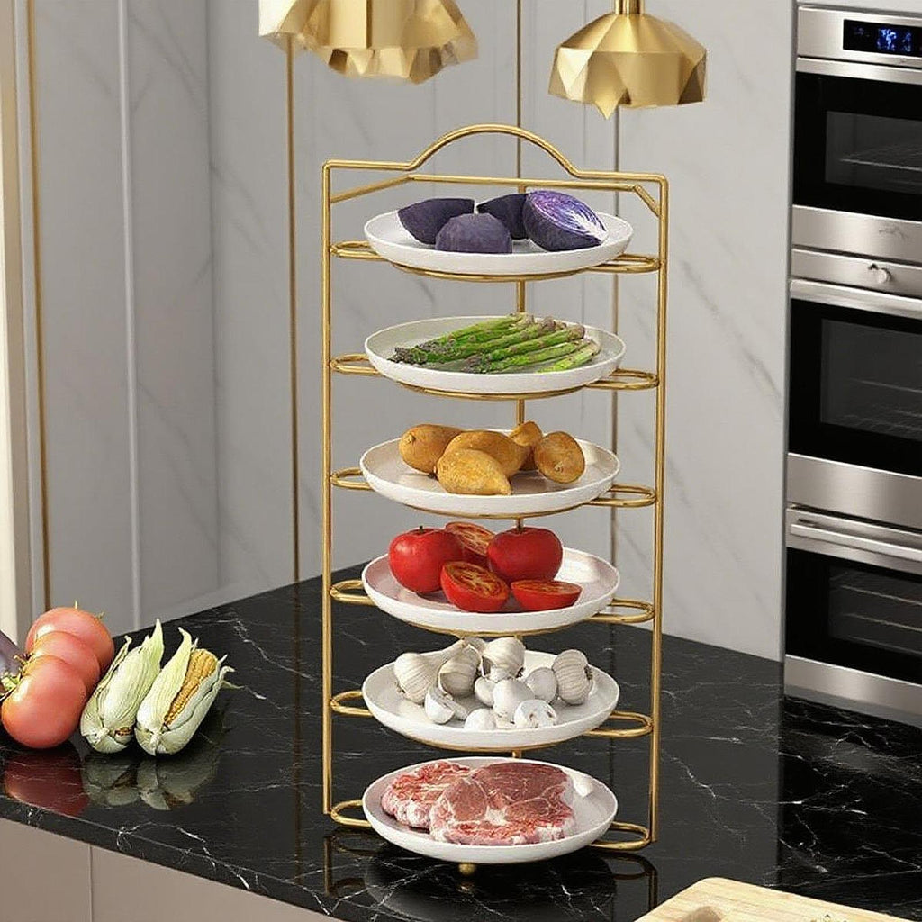 Expandable Countertop Shelves Iron Modern 6 Tier Kitchen Table Top Organizer Gold