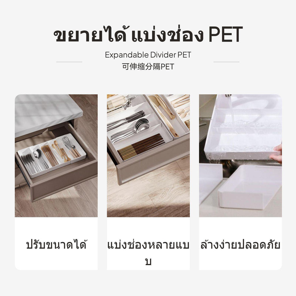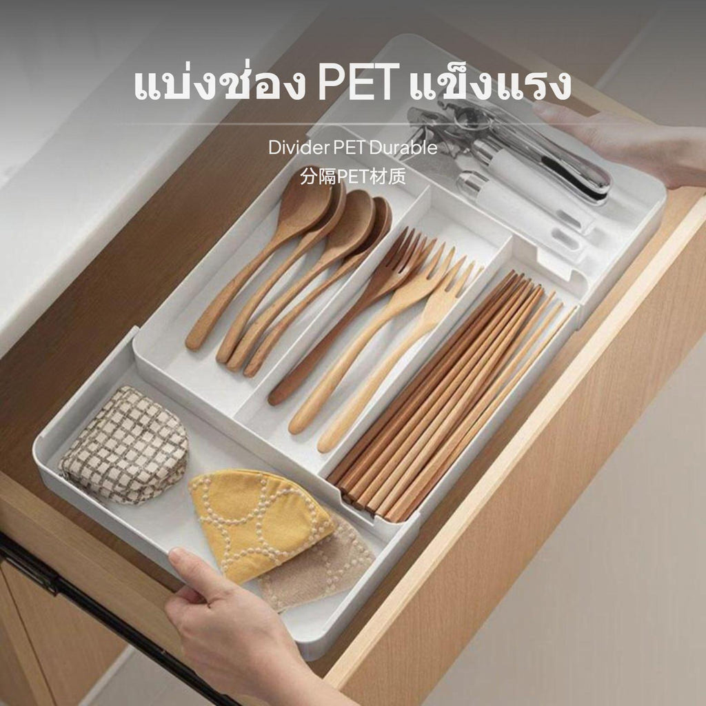 [Efficient Expandable Organization] optimize your kitchen, office, or vanity with this expandable drawer organizer, featuring an adjustable design and multiple compartments to neatly arrange utensils, stationery, or cosmetics.[Flexible and adaptable Storage] The tray adjusts to fit various drawer sizes, making it a perfect solution for kitchens, desktops, cabinets, or dressers, and supports categorizing cutlery, chopsticks, utensils, and more.[Easy-to-Clean PET Material] Crafted from high-quality PET, the box is sturdy and easy to maintain. Each section can be separated for a thorough rinse, ensuring convenient hygiene in common use.[Modern Minimalist aesthetic] The sleek ivory design seamlessly matches any home décor, whether in Japanese, minimalist, or timeless interiors, while maximizing your drawer’s storage effectiveness.[Multi-Scene Functionality] Great for organizing kitchen utensils, cosmetics on your vanity, office supplies on your desk, or small accessories in your closet, helping keep every area tidy and accessible.Specification: