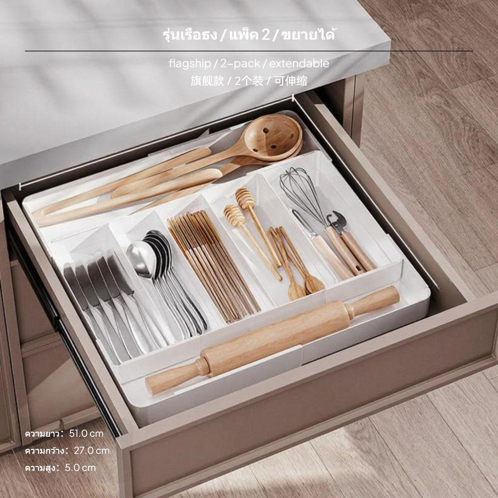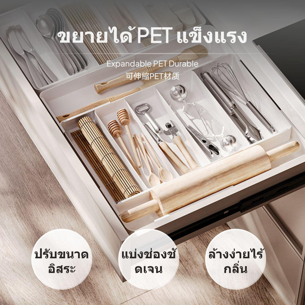 [Efficient Expandable Organization] optimize your kitchen, office, or vanity with this expandable drawer organizer, featuring an adjustable design and multiple compartments to neatly arrange utensils, stationery, or cosmetics.[Flexible and adaptable Storage] The tray adjusts to fit various drawer sizes, making it a perfect solution for kitchens, desktops, cabinets, or dressers, and supports categorizing cutlery, chopsticks, utensils, and more.[Easy-to-Clean PET Material] Crafted from high-quality PET, the box is sturdy and easy to maintain. Each section can be separated for a thorough rinse, ensuring convenient hygiene in common use.[Modern Minimalist aesthetic] The sleek ivory design seamlessly matches any home décor, whether in Japanese, minimalist, or timeless interiors, while maximizing your drawer’s storage effectiveness.[Multi-Scene Functionality] Great for organizing kitchen utensils, cosmetics on your vanity, office supplies on your desk, or small accessories in your closet, helping keep every area tidy and accessible.Specification: