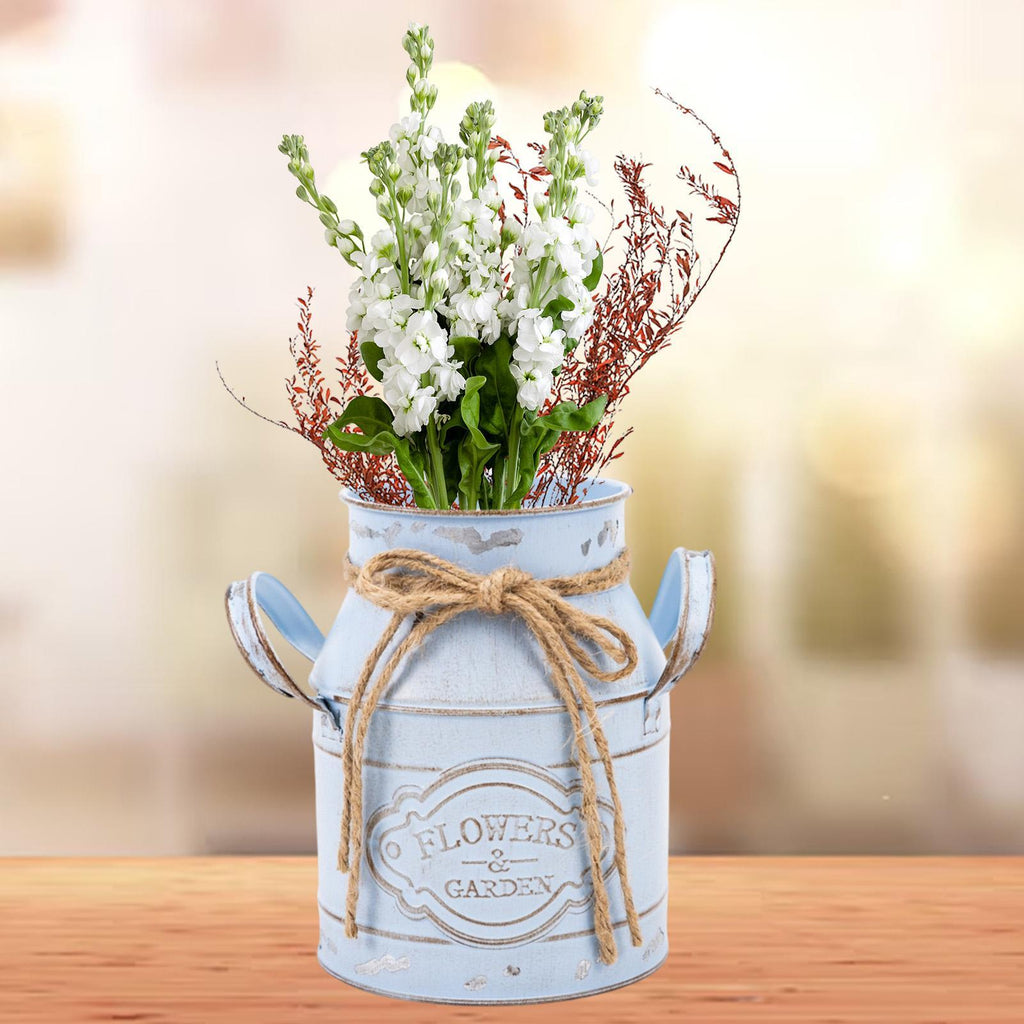 Maxbell Farmhouse Flower Planter Sturdy Bucket Container for Patios Balconies Party Blue
