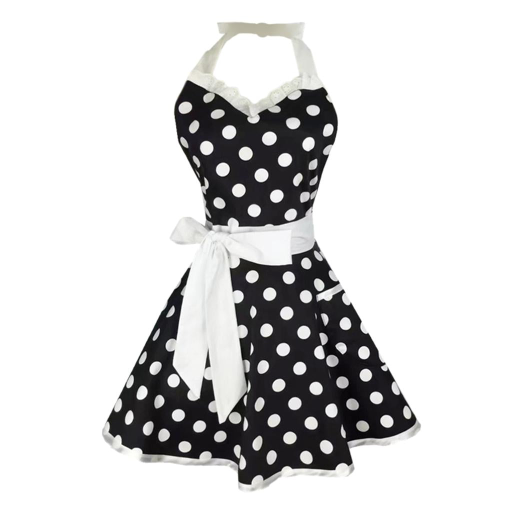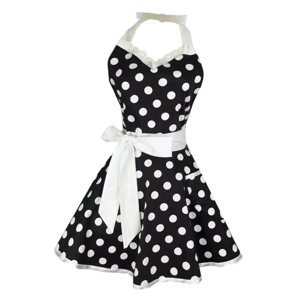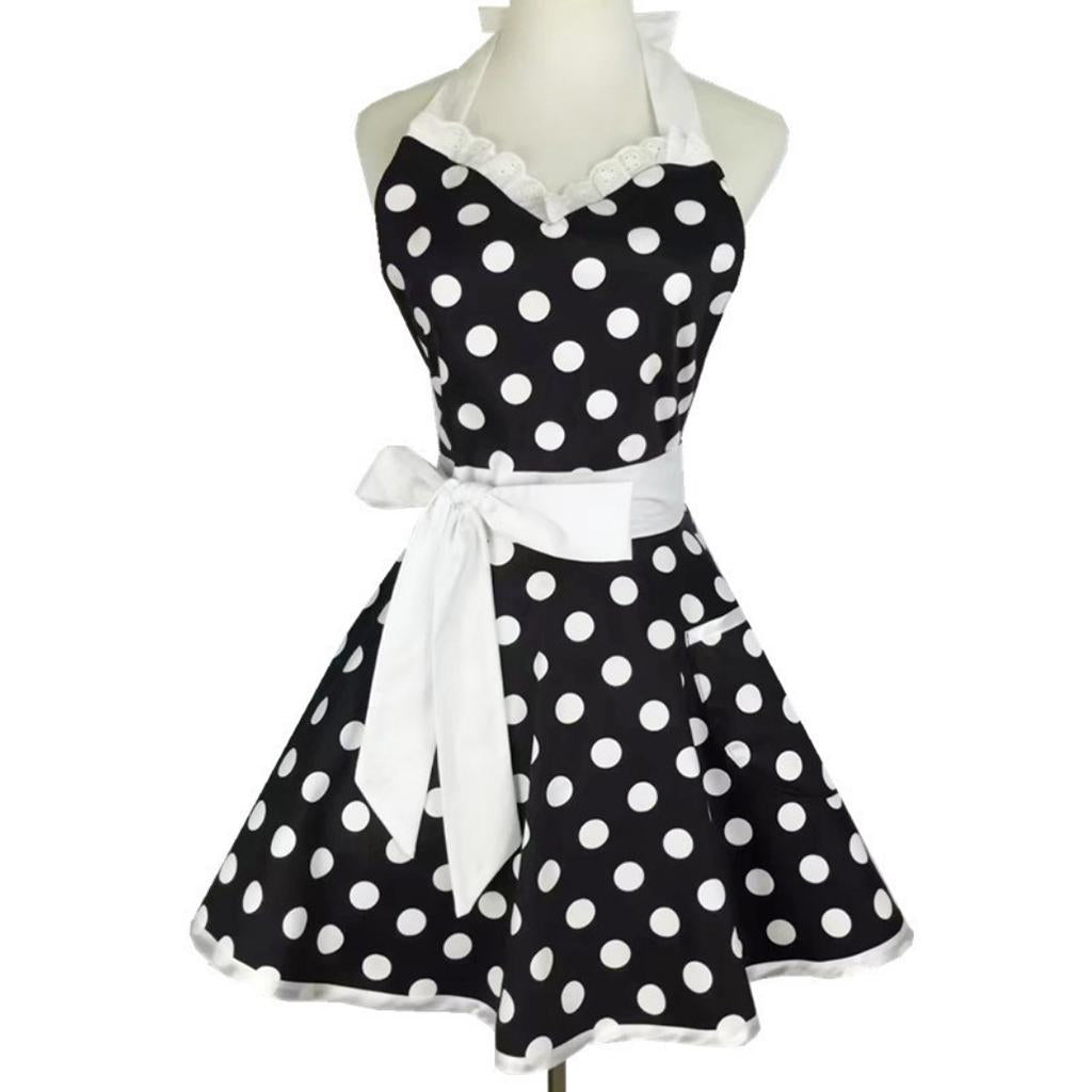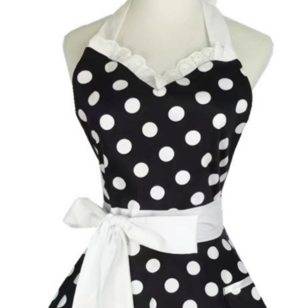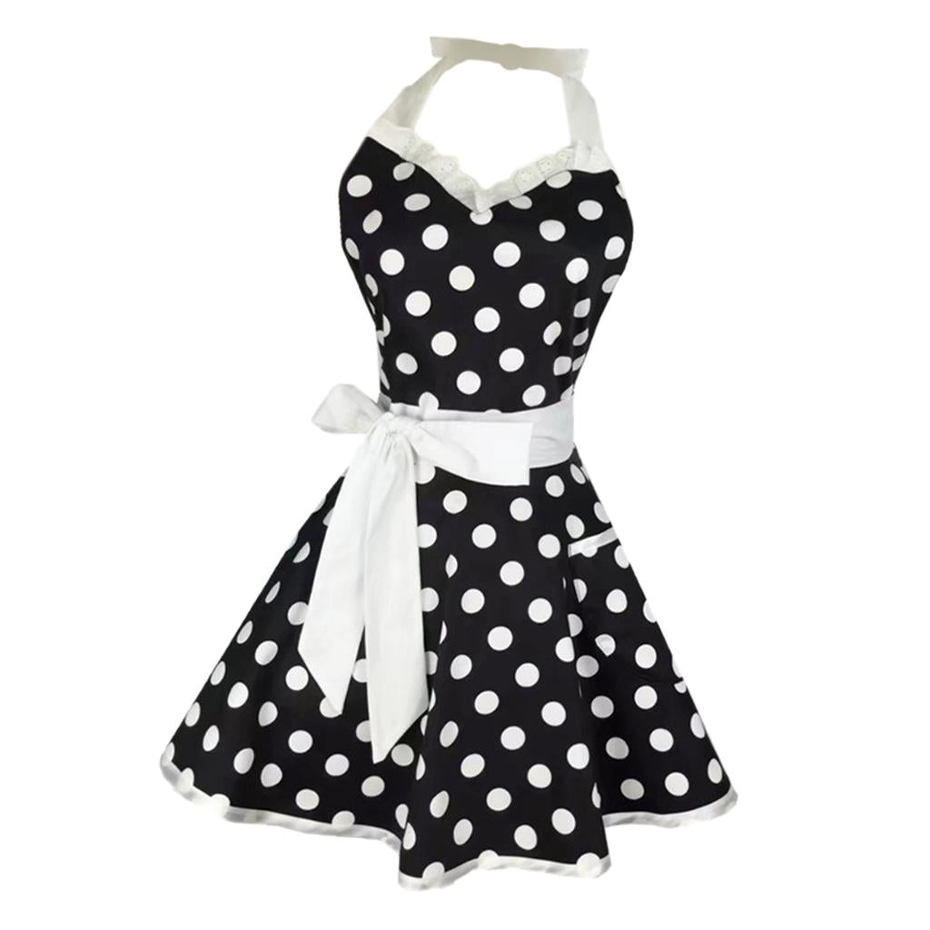 Max Fashion Aprons Cotton Dress Lace Dot Apron Home Kitchen Black
