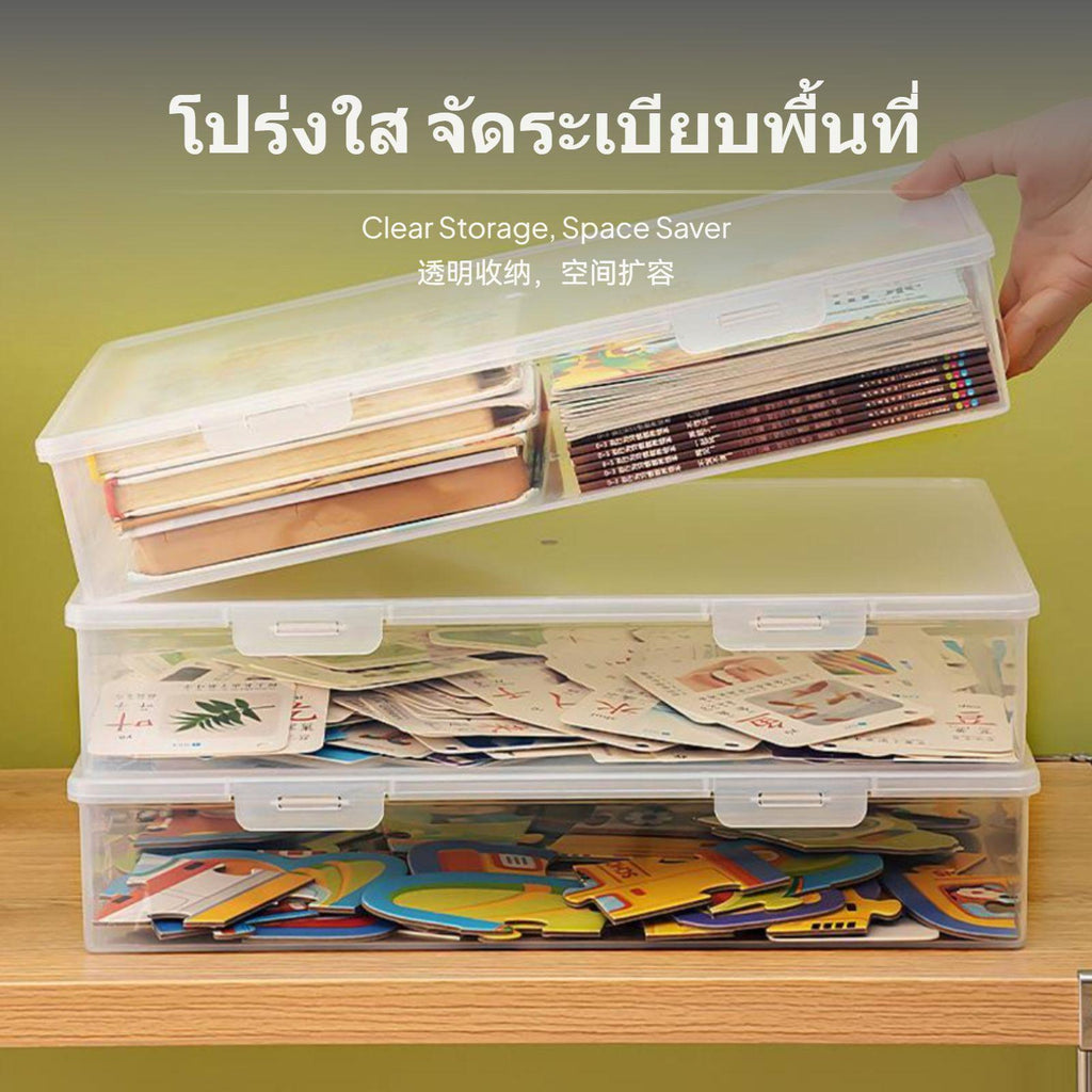 [Space-saving under-bed organizer] This extra-thin, flat storage box takes utilize of lowheight spaces such as under beds and sofas, helping to maximize your home storage capacity.[Clear and visible design] Transparent PP material allows you to quickly identify contents and retrieve items without rummaging, making it perfect for clothing, toys, or documents.[Easy hinged lid entry] Convenient hinged lid lid simplifies day-to-day use; entry stored items effortlessly withretrieve pulling retrieve the entire box, perfect for fast pickups and organization.[Stackable multi-size choices] Multiple sizes (6000ML, 6500ML, 7500ML) offer flexible arranging for efficient sorting and saving upright space in bedrooms, living rooms, or offices.[adaptable household solution] Suitable for seasonal clothes, bedding, children's toys, or books, this moderndesign container helps create a clean and tidy living environment.Specification: