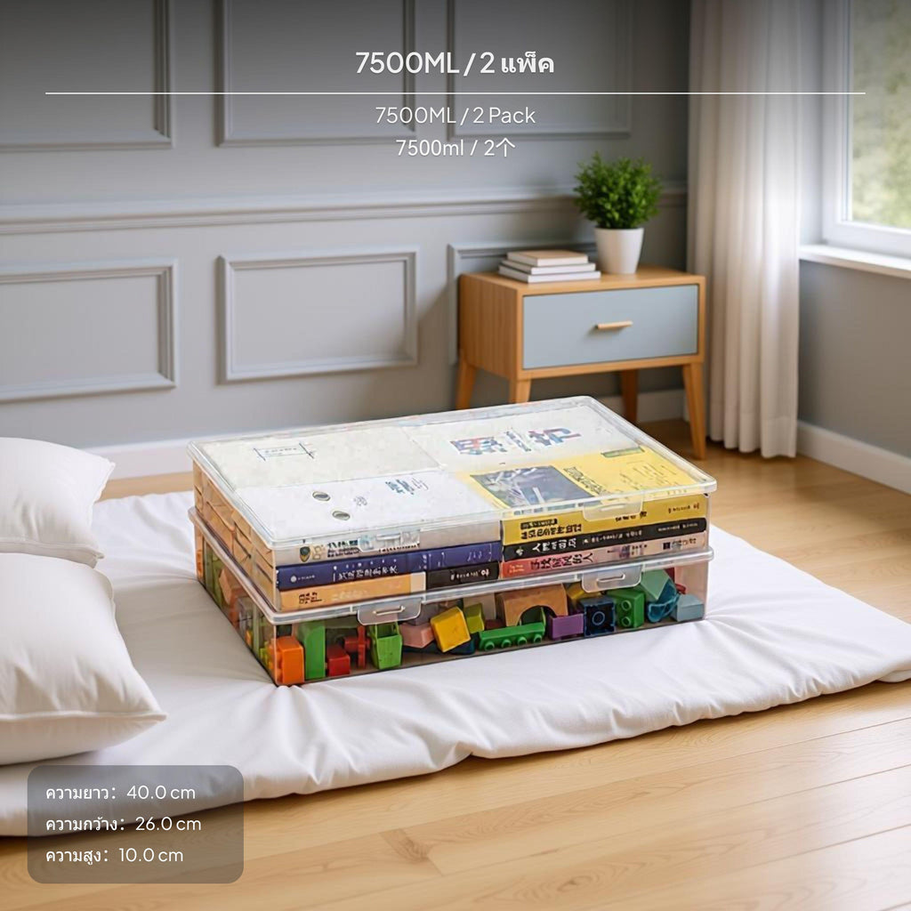 [Space-saving under-bed organizer] This extra-thin, flat storage box takes utilize of lowheight spaces such as under beds and sofas, helping to maximize your home storage capacity.[Clear and visible design] Transparent PP material allows you to quickly identify contents and retrieve items without rummaging, making it perfect for clothing, toys, or documents.[Easy hinged lid entry] Convenient hinged lid lid simplifies day-to-day use; entry stored items effortlessly withretrieve pulling retrieve the entire box, perfect for fast pickups and organization.[Stackable multi-size choices] Multiple sizes (6000ML, 6500ML, 7500ML) offer flexible arranging for efficient sorting and saving upright space in bedrooms, living rooms, or offices.[adaptable household solution] Suitable for seasonal clothes, bedding, children's toys, or books, this moderndesign container helps create a clean and tidy living environment.Specification: