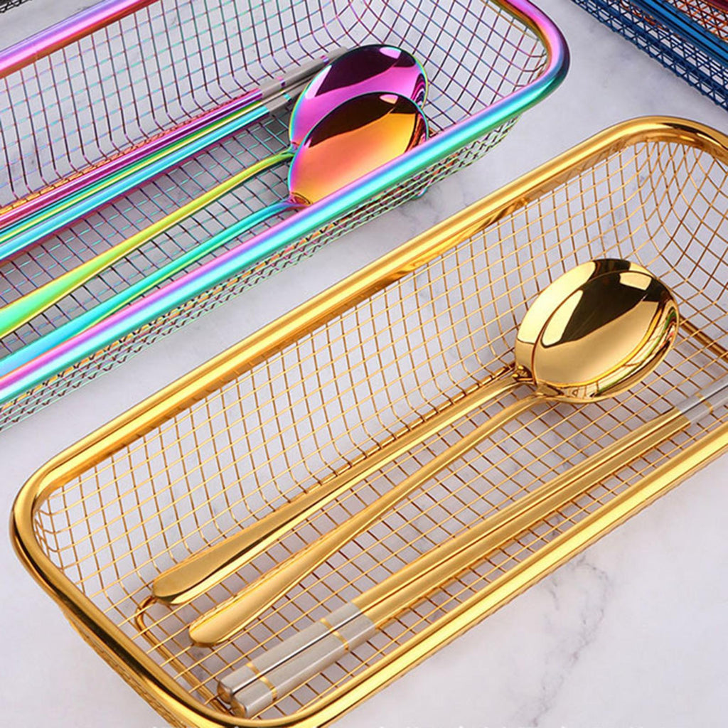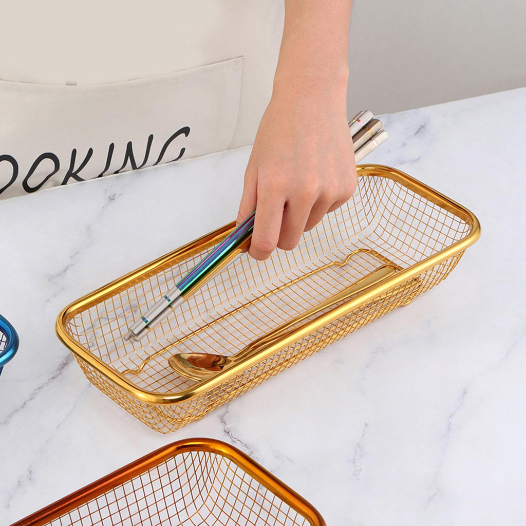【Versatile】: This rectangular cutlery basket is designed to hold chopsticks, knives, forks, and spoons. It's a multipurpose draining basket that helps keep your kitchen utensils organized.