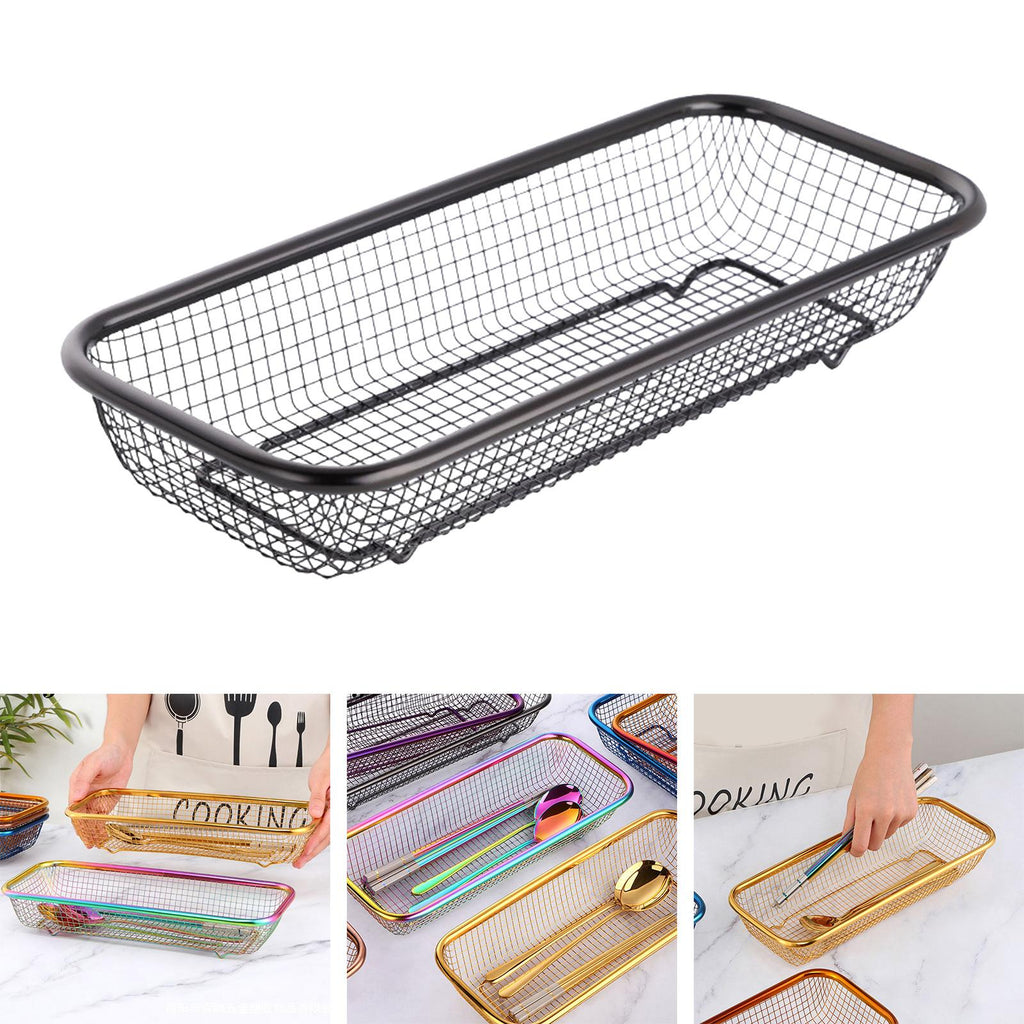 【Versatile】: This rectangular cutlery basket is designed to hold chopsticks, knives, forks, and spoons. It's a multipurpose draining basket that helps keep your kitchen utensils organized.