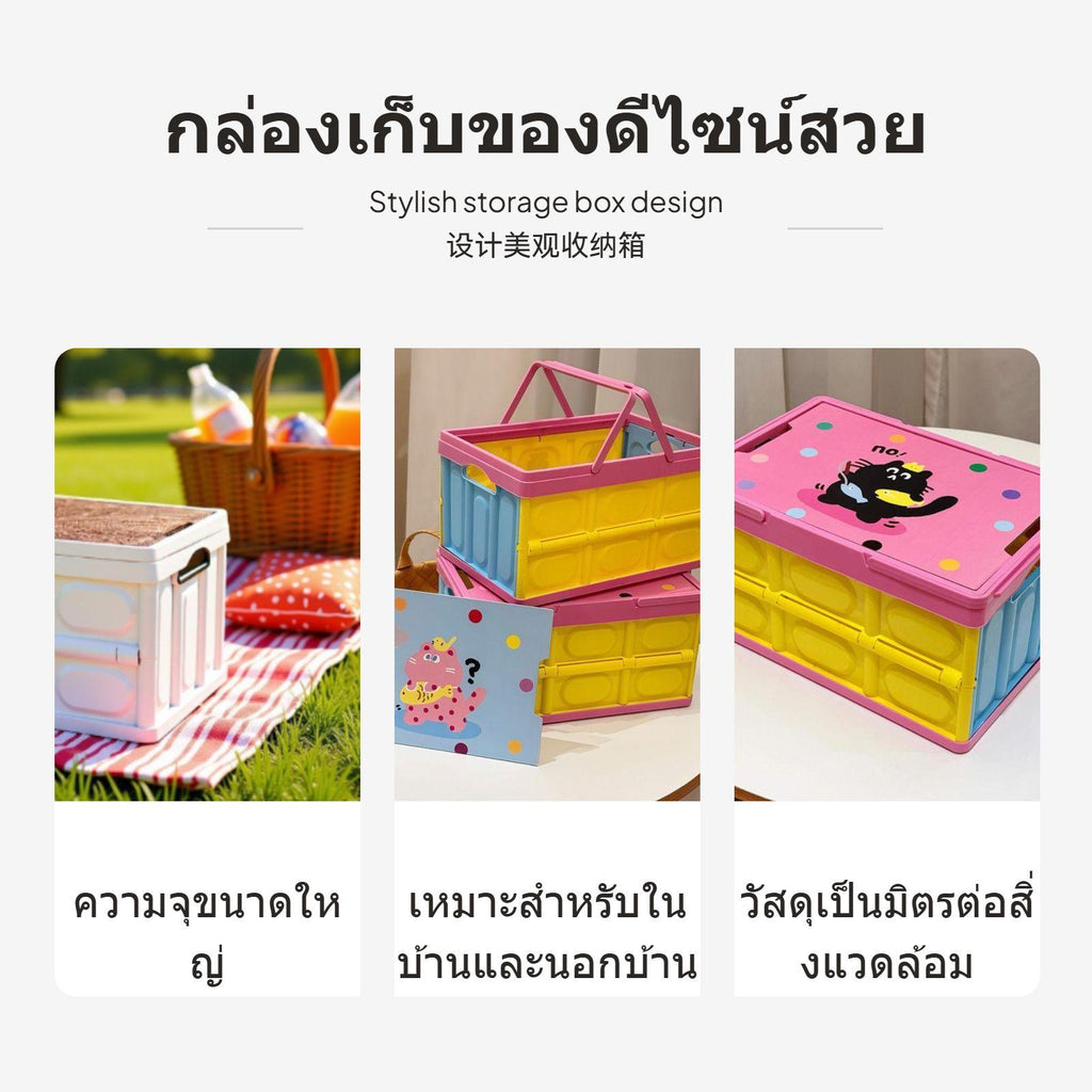 [Vivid Dopamine Design] This colorful storage box features dopamine-inspired hues, cartoony designs, and a fun decorative accent, making it perfect for outdoor picnics or home uses.[adaptable Use for Organizing] Perfect for camping, picnics, trunk organization, or as a home storage container for clothes, toys, and supplies for all your essentials.[Space-Saving Foldable Design] Easily folded down to 6-7cm for space-efficient storage. A practical choice for tight spaces or portable adventures.[High-Quality sturdy Material] Made of resilient PP material with optional wooden lids for added functionality, or waterproof fabric in chosen design s to keep contents dry.[Multiple Sizes and Styles] Choose from lively dopamine designs, minimalist single-color color wooden lid designs, or water-resistant bags, with capacities ranging from 15L to 55L.
