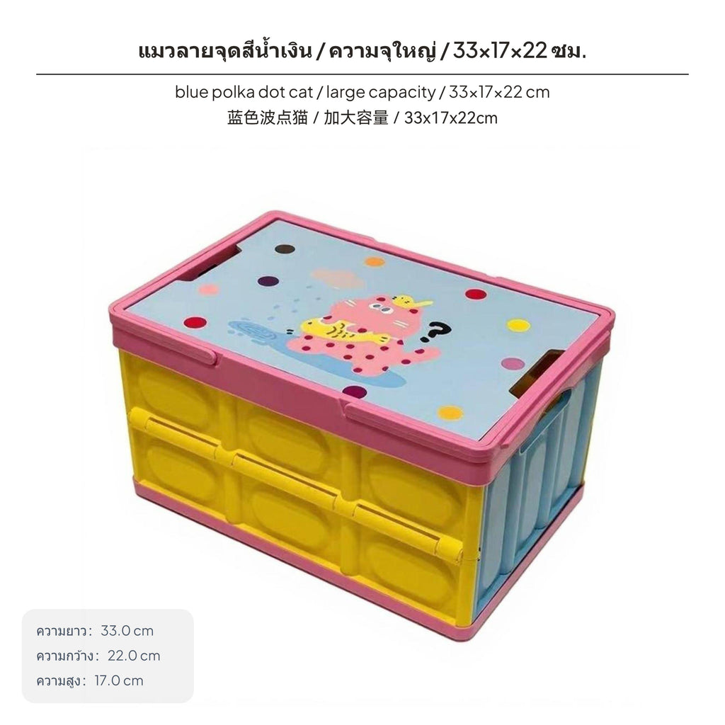 Foldable Dopamine Storage Box, Outdoor outdoor gathering Organizer, Trunk Container Blue Polka Dot Cat