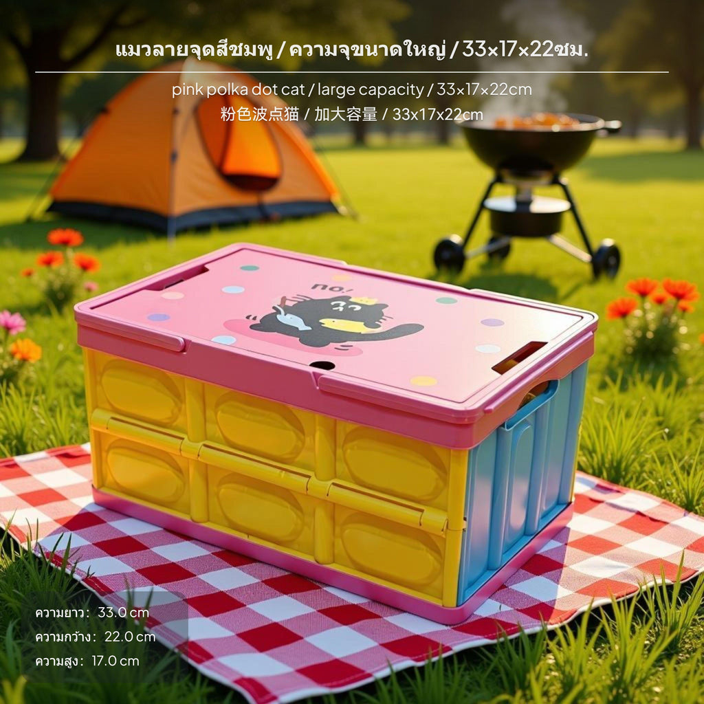 Foldable Dopamine Storage Box, Outdoor outdoor gathering Organizer, Trunk Container Pink Polka Dot Cat