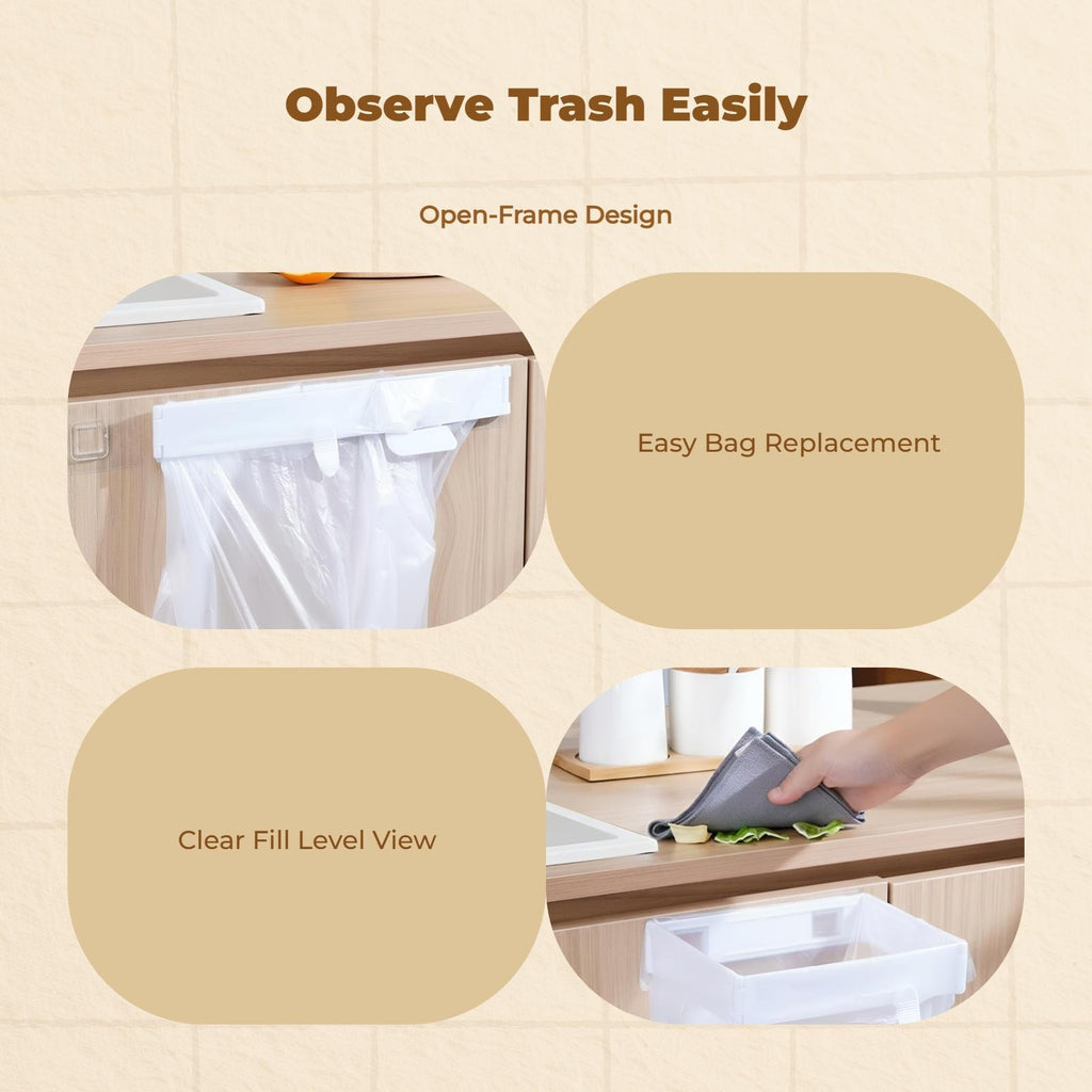 【Foldable Trash Bag Holder for Kitchen】This trash bag holder features a space-saving design, perfect for organizing kitchen waste and keeping your workspace tidy.【sturdy and Convenient】Crafted from high-quality materials, this foldable holder is sturdy and easy to install, suitable for cabinet doors, bathrooms, offices, and more.【Versatile Use】Perfect for kitchens, bathrooms, offices, RVs, and camping, this organizer efficiently manages trash in a variety of settings.【Easy Installation, No Tools Needed】The holder is designed for tool installation, ensuring quick and effortless setup without damaging your surfaces.【Practical and Hygienic】designed to maintain a clean and organized space, this trash bag holder is a convenient solution for home organization.Specification:
