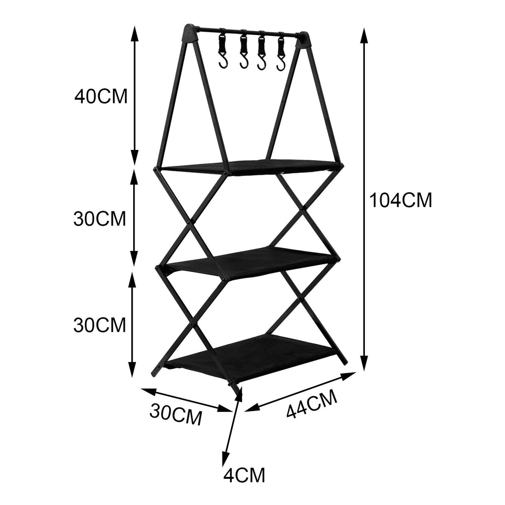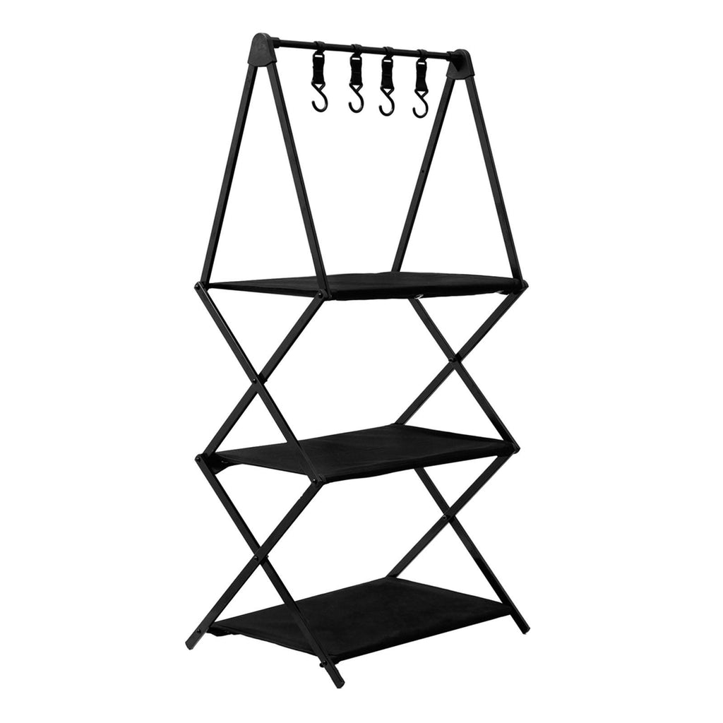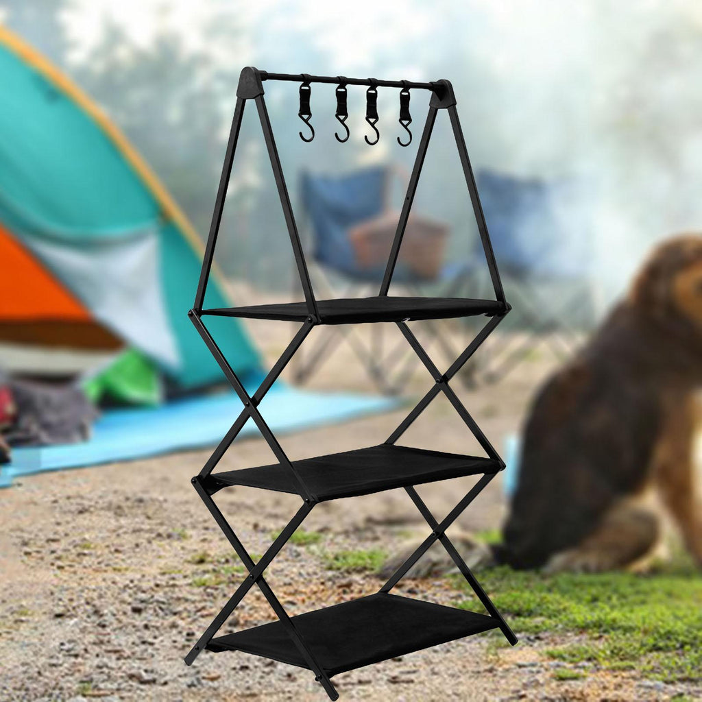 Maxbell Folding Storage Shelves Organizing Rack Portable for Kitchen Picnic Black 3 Tier