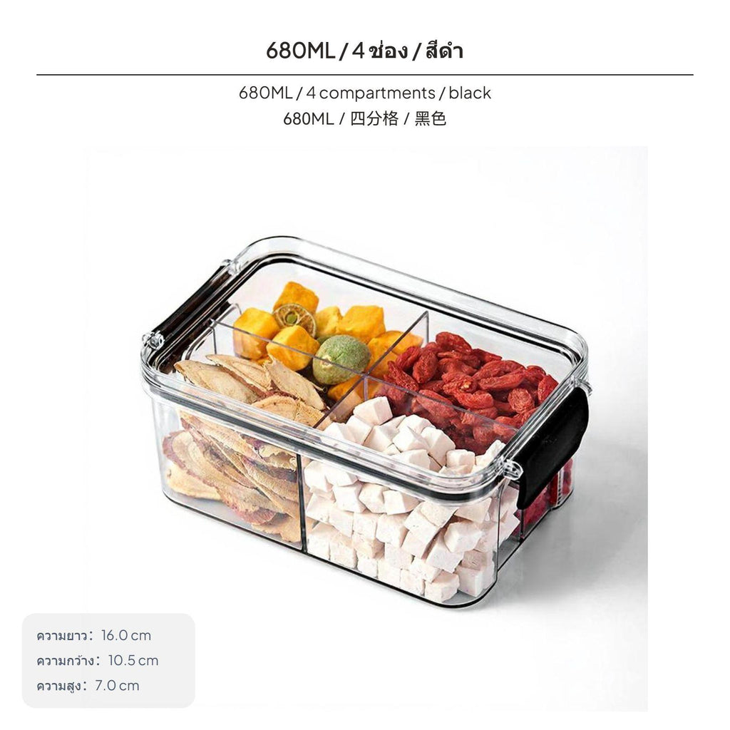 [Multi-Functional Airtight Design] Keep your tea, spices, grains, and dry goods crisp and well-protected with this airtight container, featuring an anti-moisture function that extends shelf life.[Customizable Compartment configurations] Choose from multiple compartment designs, including 2compartment, 3compartment, 4compartment, or 6compartment configurations, perfect for categorizing different food items without cross-contamination.[Transparent Visibility] The clear container design allows you to easily view and reach contents, ensuring you quickly find what you're looking for without unnecessary hassle.[Food-Grade PET Material] Made of food-grade plastic in a secure and odorless material, this storage solution is safe for storing tea, botanical ingredients, food grains, and more.[Space-Saving Stackable Design] Its nested feature optimally utilizes upright space, helping you keep your kitchen, pantry, or cabinets neat and organized.Specification: