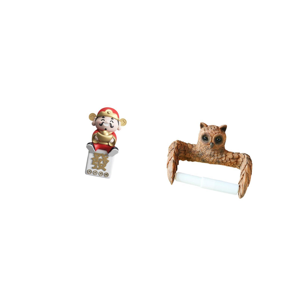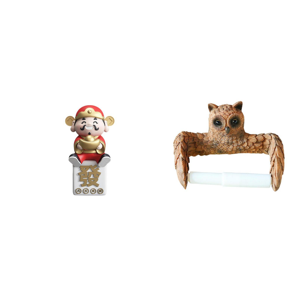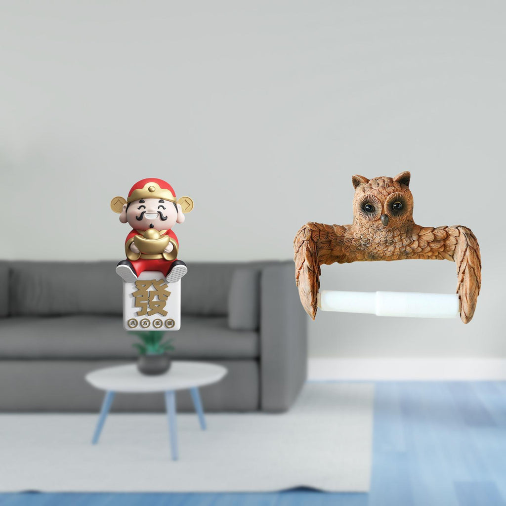 Fortune Owl Statue Creative Luck Figurine Toilet Paper Holder Cartoon Organizer for New Year Home Kitchen Easy Installation Towel Roll Dispenser