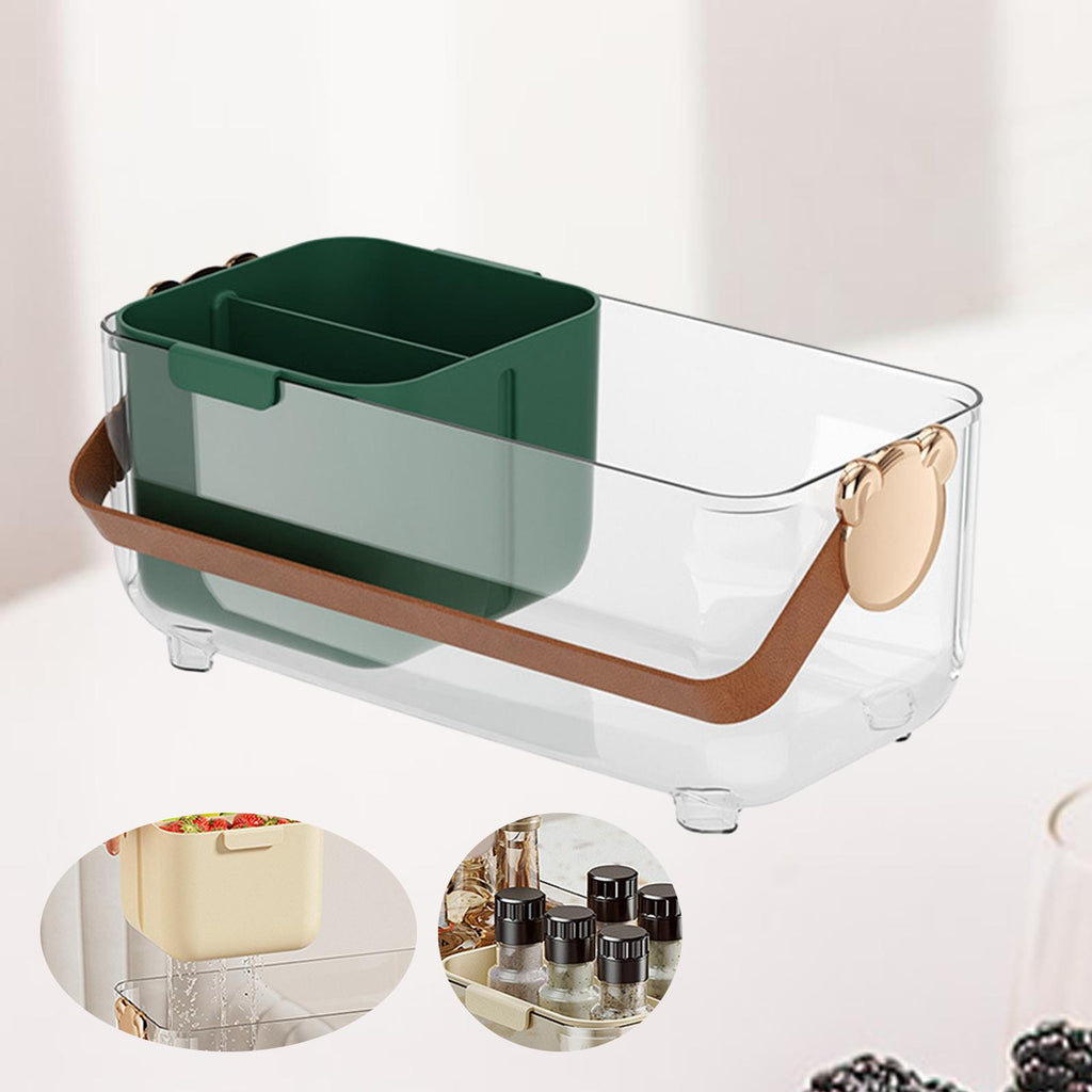 【Easy to carry】: This Fruit drain box is designed with PU material handle and needs to be installed manually. It feels comfortable in the hand, can accommodate all sizes of fruits, and has a large capacity. The handle is comfortable to hold and suitable for use in different environments.
