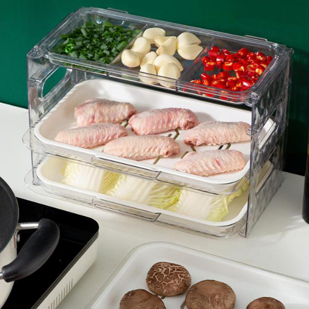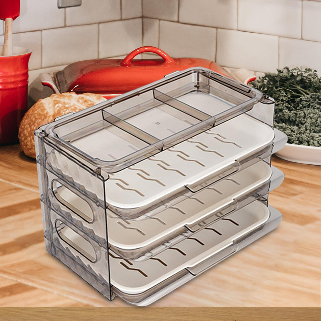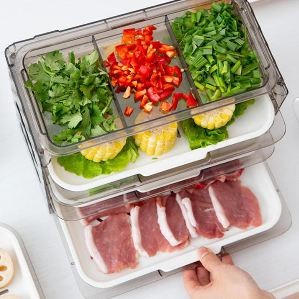 DRAWER DESIGN: Foldable and detachable organizer tray is easy to pick up dishes and orderly, built in drawer rail, taking dishes smoothly, saving time and effort.