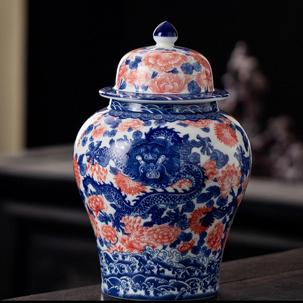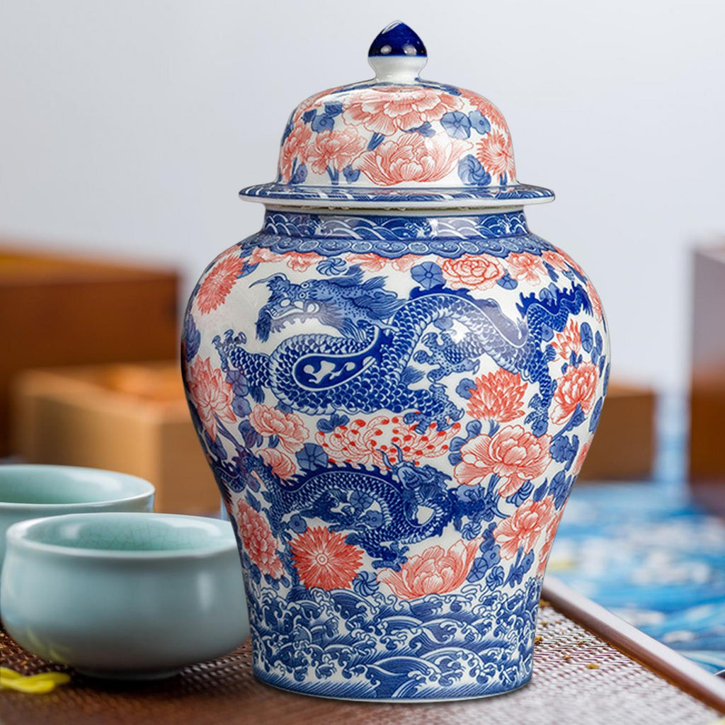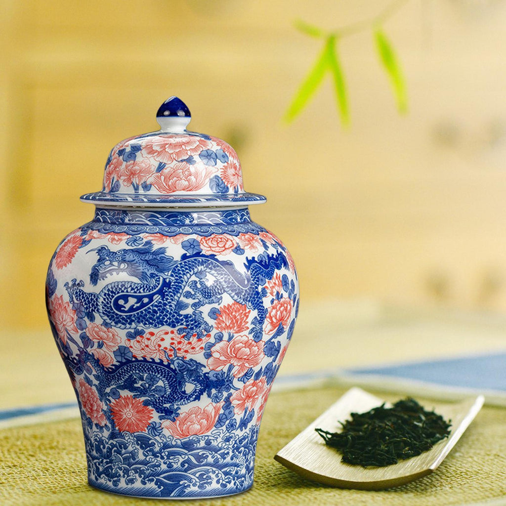 Maxbell Ginger Jar Chinese 1300ml Ceramic Porcelain Storage Jar for Office Home Gift dragon